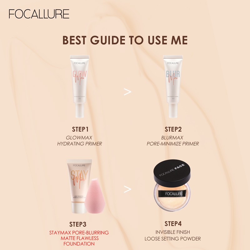Focallure ไพรเมอร์ ควบคุมความมัน ให้ความชุ่มชื้น รองพื้น คอนซีลเลอร์ ชุดแต่งหน้า 2 ชิ้น