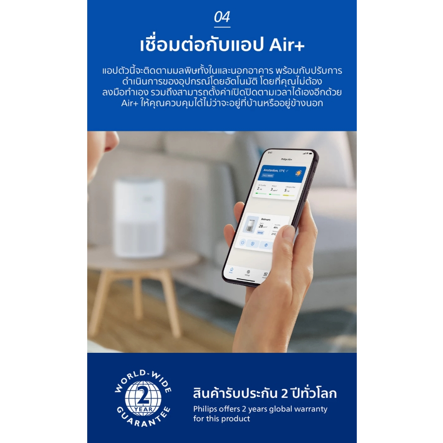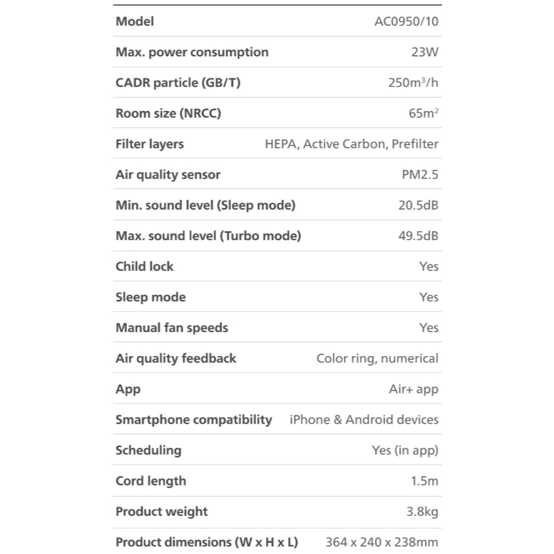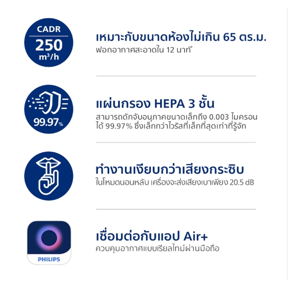 Philips Air Purifier AC0950/10 เครื่องฟอกอากาศสำหรับห้องขนาด 65 ตร.ม.