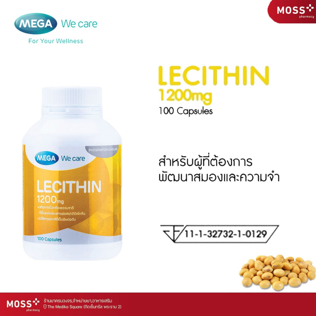 MEGA We care LECITHIN 1200 มก. (เมก้า เลซิติน) เลซิตินจากถั่วเหลือง สมองและความจำ บรรจุ 100 แคปซูล