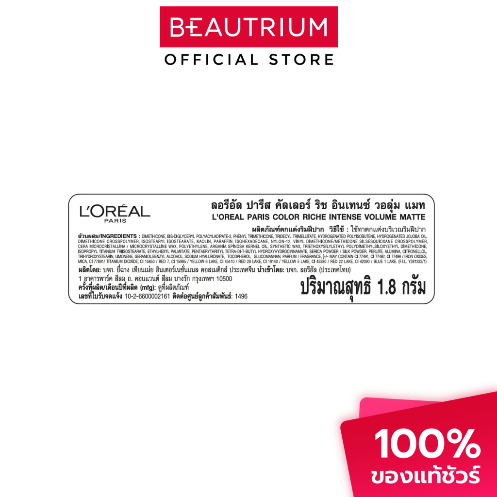 L'ORÉAL PARIS Color Riche Intense Volume Matte ลิปสติก 1.8g