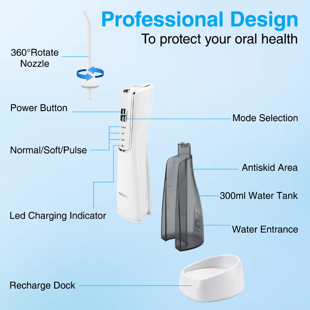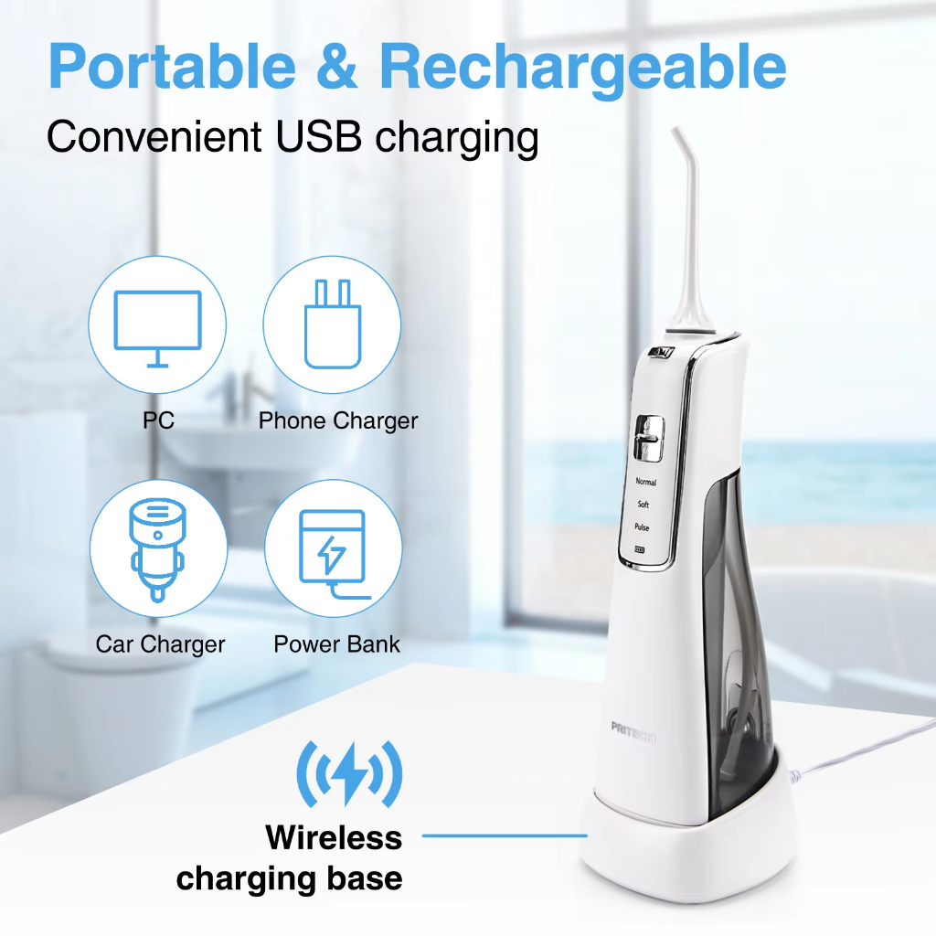 Oral Irrigator 3 โหมดกันน้ํา 300ML Water Flosser ถังสําหรับฟันไวท์เทนนิ่ง,แบบพกพา Dental Jet Usb เครื่องมือทําความสะอาด 4 หัวฉีด