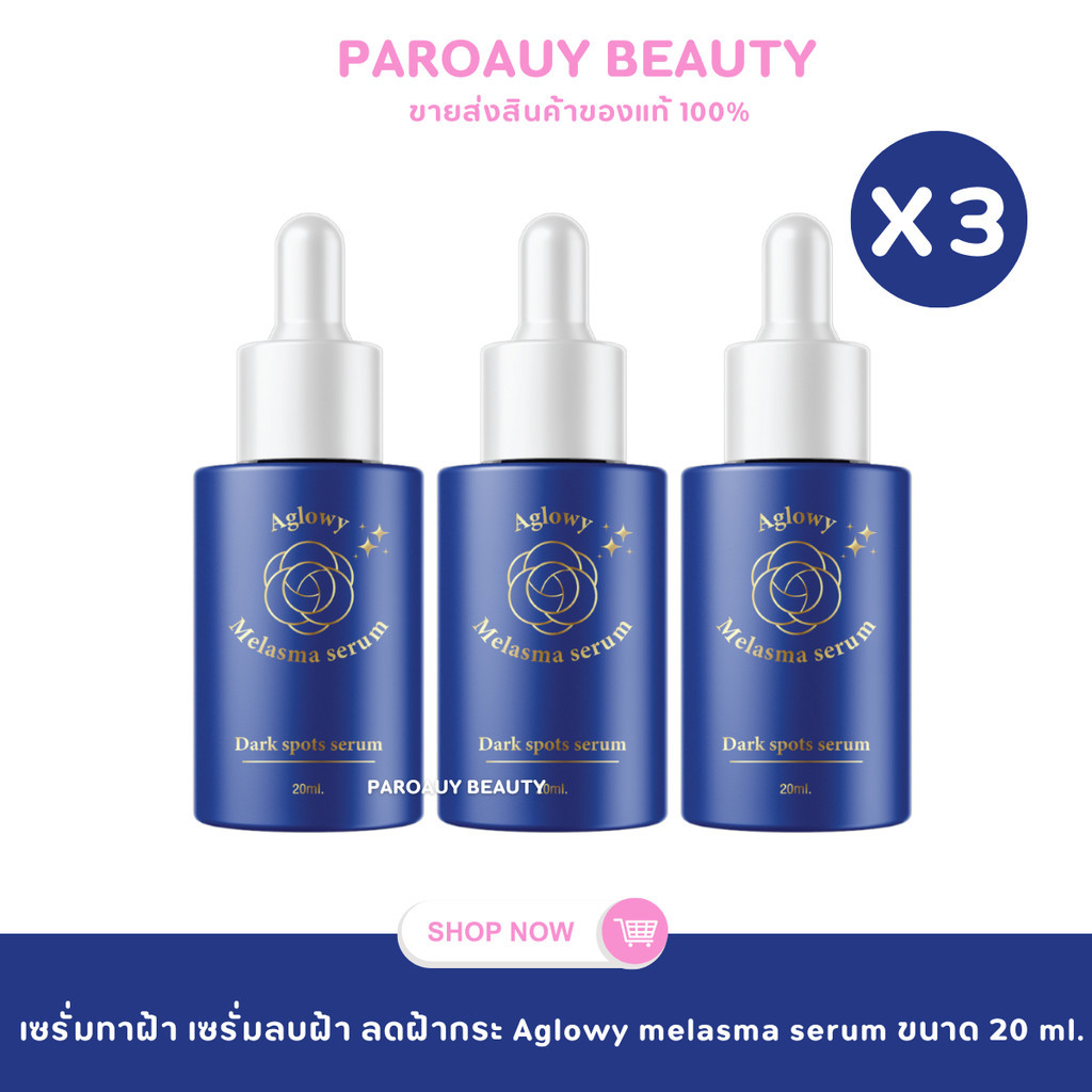(3ขวด) เซรั่มทาฝ้า เซรั่มลบฝ้า ลดฝ้ากระ Aglowy melasma serum ขนาด 20 ml.