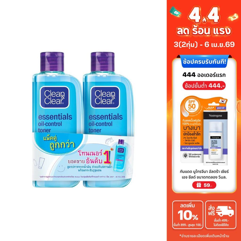 [แพ็คคู่] คลีนแอนด์เคลียร์ โทนเนอร์ เอสเซนเชี่ยล ออยล์ คอนโทรล 100 มล. x 2 Clean & Clear Essentials Oil Control Toner