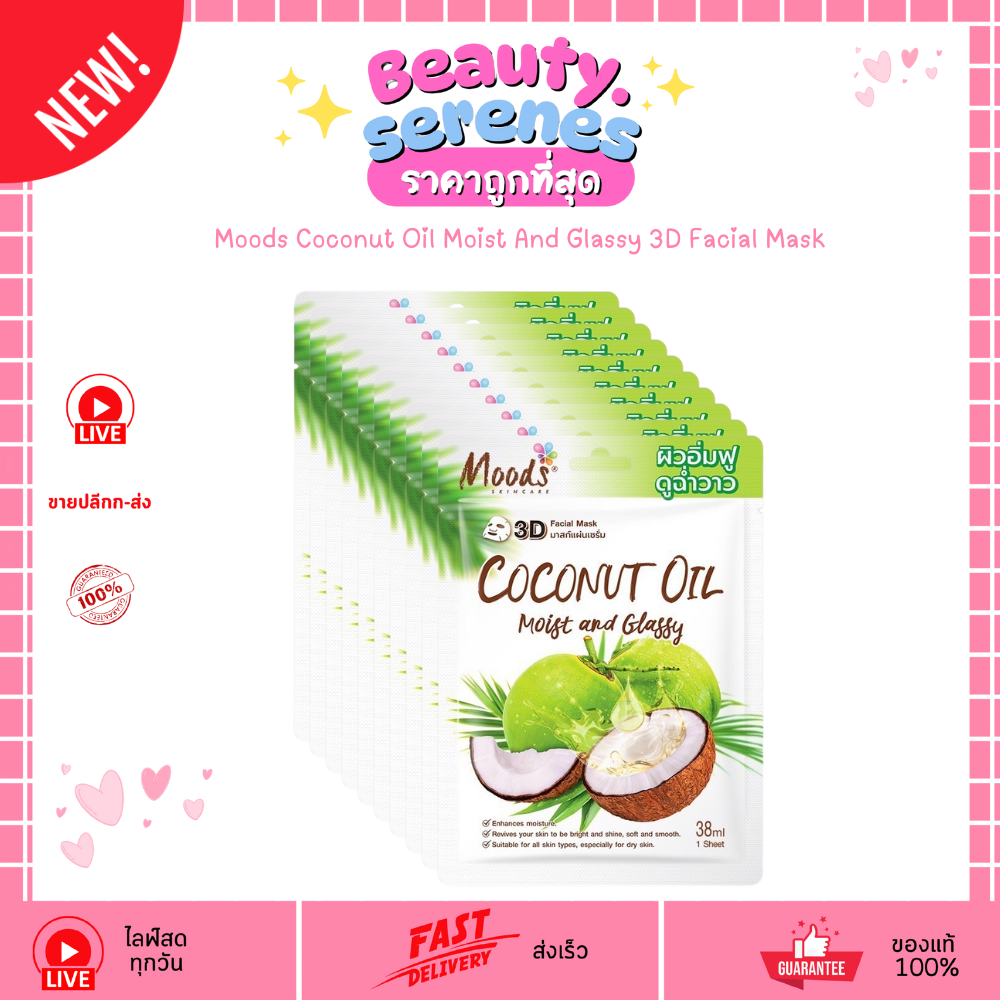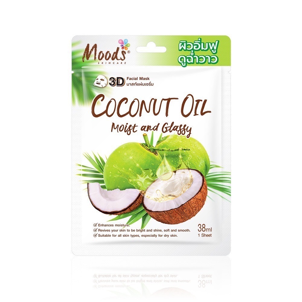 (ยกกล่อง/10ซอง) มูดส์ คอกโค่นัท ออยล์ โมอิสต์ แอนด์ กลาซซี่ 3D เฟเชียล มาส์ก Moods Coconut Mask