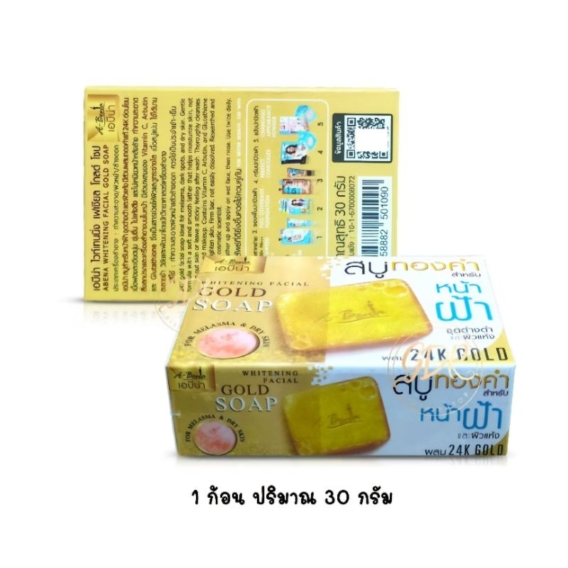 ส่งฟรี/มีไลฟ์ สบู่ทองคำ ABENA WHITENING FACIAL GOLD SOAP เอบีน่า ไวท์เทนนิ่ง เฟเชียล โกลด์ โซป30g