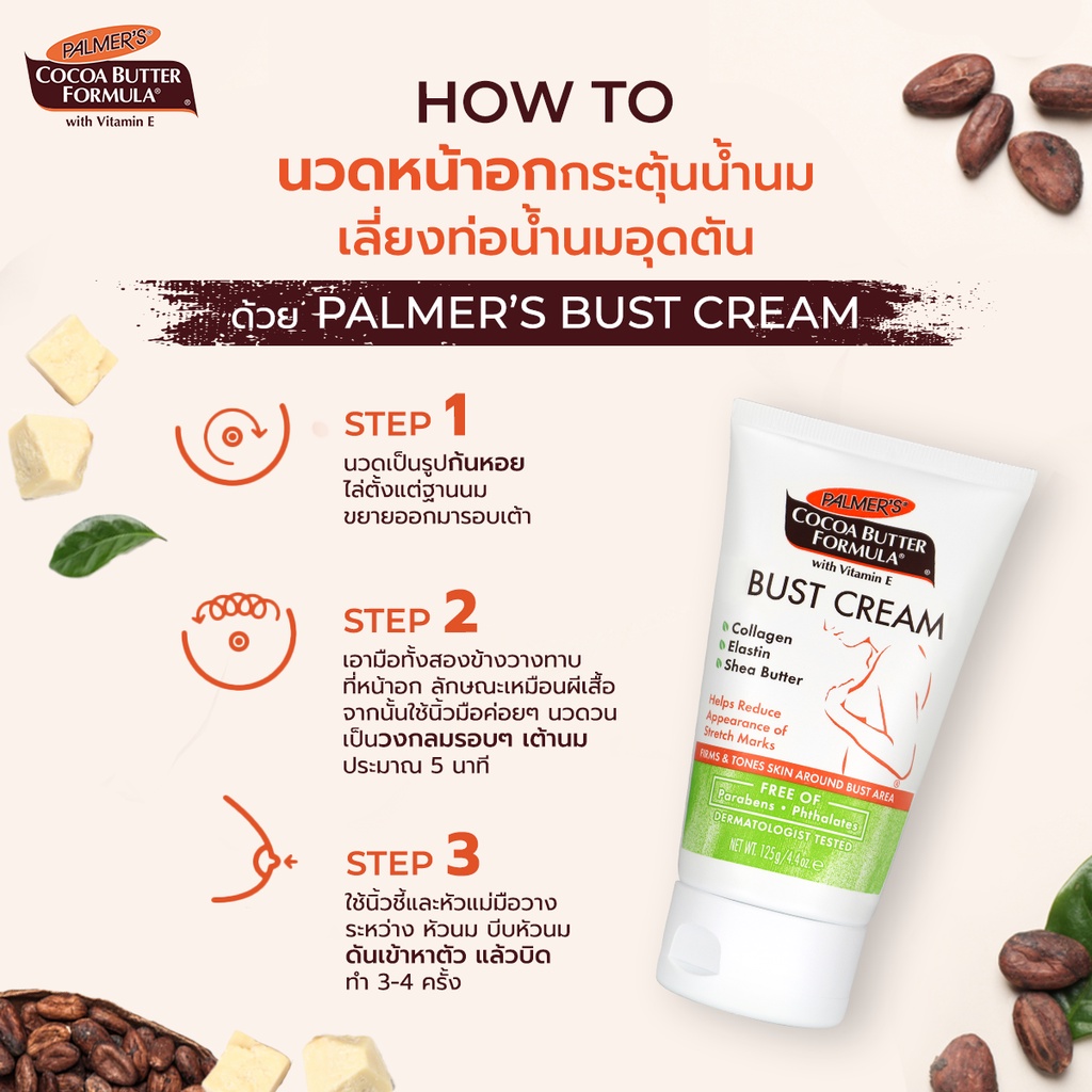 Palmer's Bust Cream 125ML โลชั่นมอยส์เจอร์ไรเซอร์ สำหรับทาหน้าอก สารสกัดจากโกโก้ ให้ความชุ่มชื้น เพิ่มความยืดหยุ่น