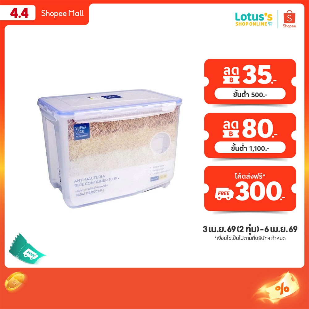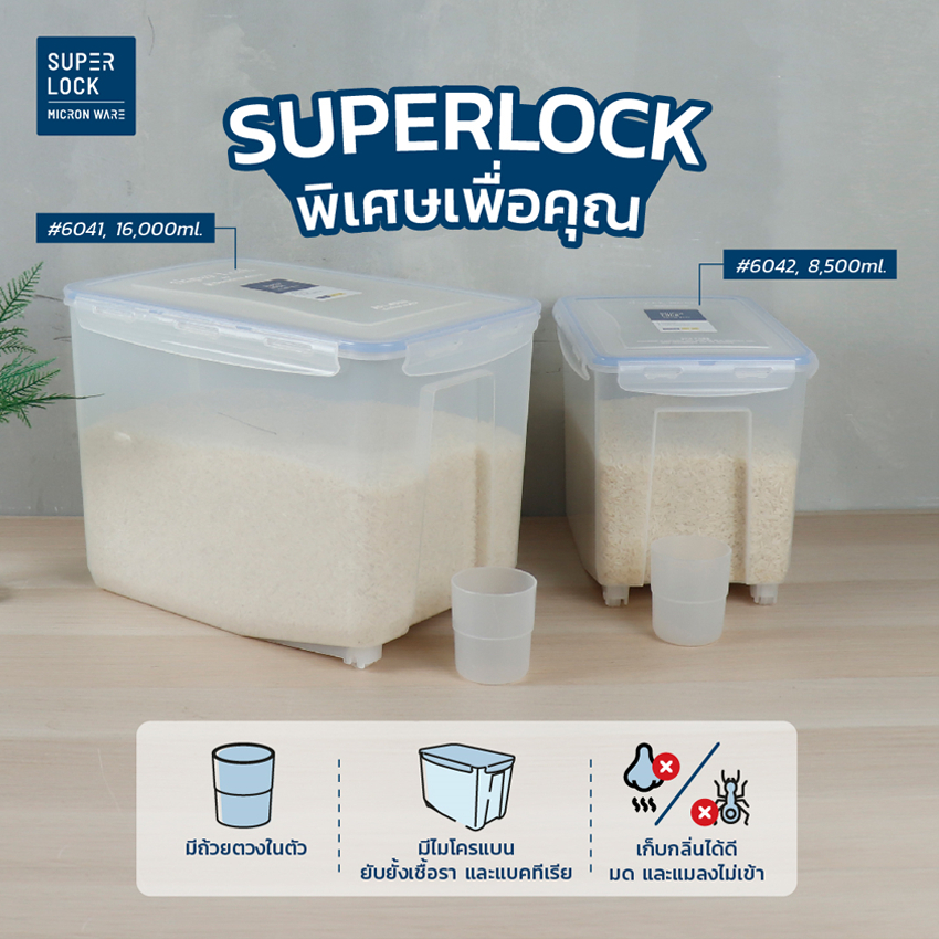 ซุปเปอร์ ล็อค กล่องใส่ข้าวสาร ขนาดความจุ 10 กิโลกรัม รุ่น 6041 SUPER LOCK RICE BOX CLASIC10 KG.