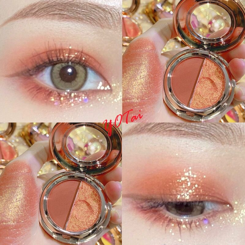 YOTAI ❤️LAMEILA❤️ อายแชโดว์ อายแชโดว์พาเลท พาเลตอายแชโดว์ เนื้อใยไหม ประกายชิมเมอร์ Eyeshadow 2สี กันน้ํา ติดทนนาน
