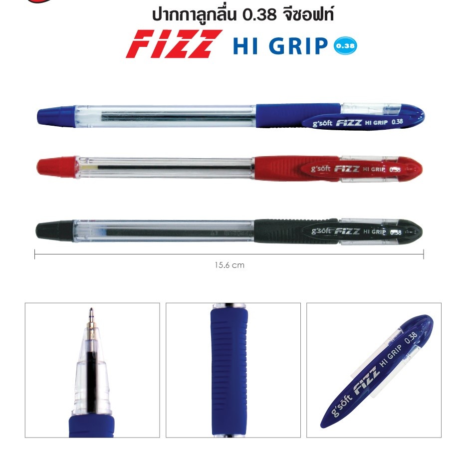 (1 ด้าม) ปากกาลูกลื่น 0.38 มม. จีซอฟท์ HI-GRIP g soft fizz hi grip 0.38
