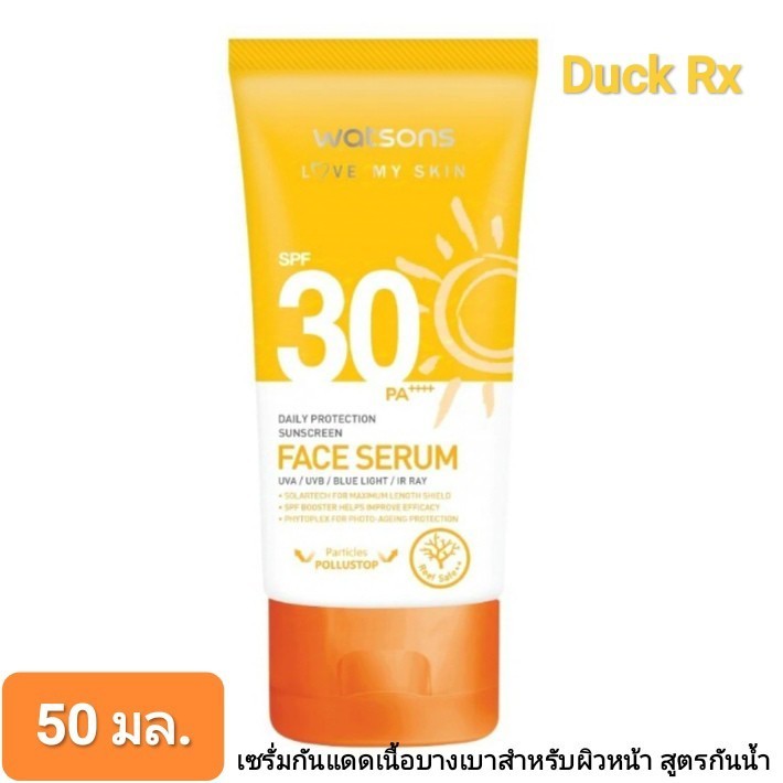 [Exp.05/2027] watsons DAILY PROTECTION SUNSCREEN FACE SERUM SPF30 PA++++ 50 ml. เซรั่มกันแดด ผิวหน้า สูตรกันน้ำ