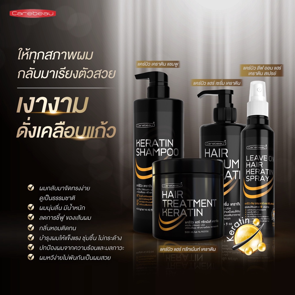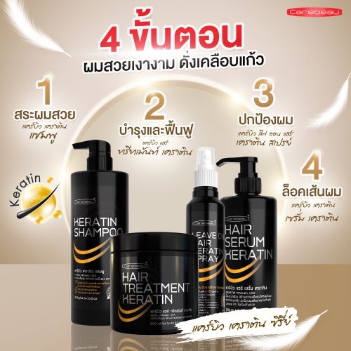 แคร์บิว ทรีทเมนท์/เซรั่ม/แชมพู/สเปรย์ เคราติน แฮร์ Carebeau Hair Serum/Treatment /Spray Keratin 220/280/400/500 ml.