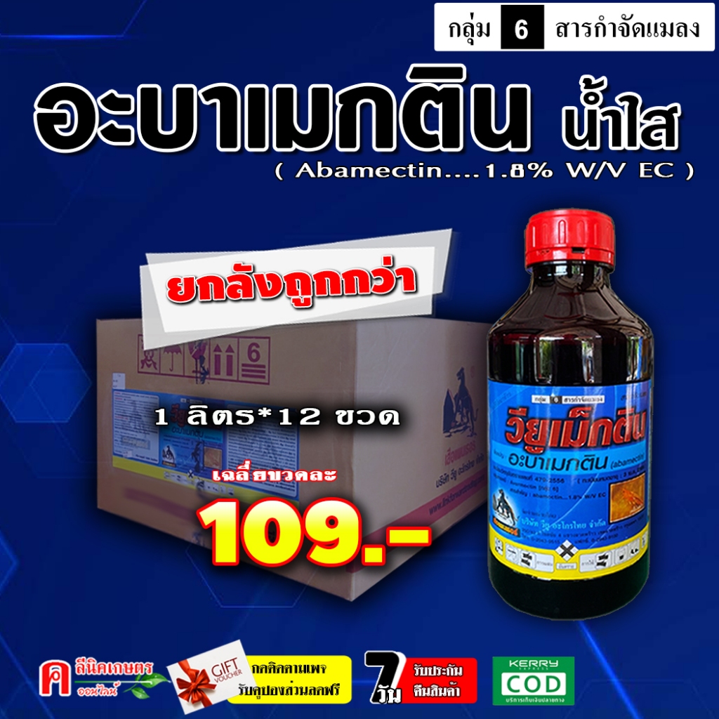 💢แพ็ค 12 ขวด💢 วียูเม็กติน อะบาแม็กติน ( น้ำใส สูตรเย็น ) อะบา อะบาเมกติน อะบาเม็กติน สารกำจัดแมลง เพลี้ยไฟ หนอน