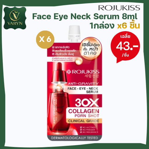 [กล่อง x6] Rojukiss Face Eye Neck Serum 8ml โรจูคิส แอนติ-กราวิตี้ เฟส อาย เนค เซรั่ม 8ml
