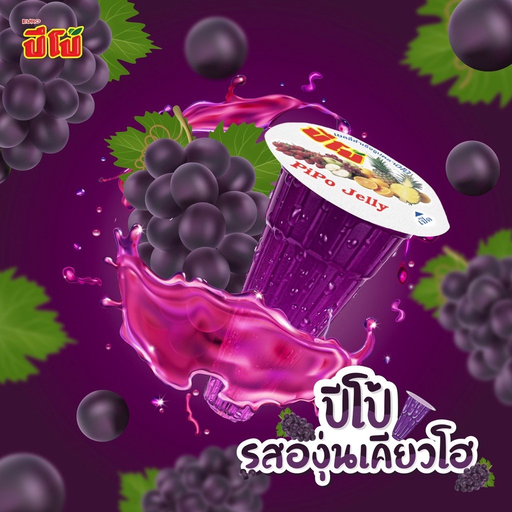 etbeauty [ 1 แพ็ค ] ปีโป้ ขนมเยลลี่คาราจีแนน 15% รวมรส พีช โคล่า องุ่นเคียวโฮ 423 ก. 18 ถ้วย