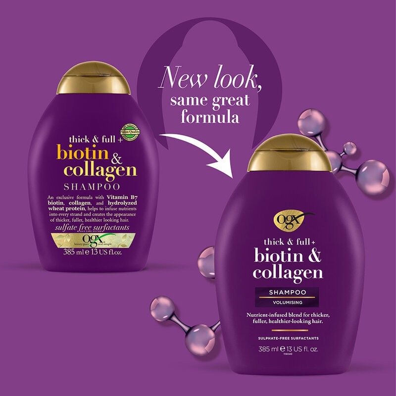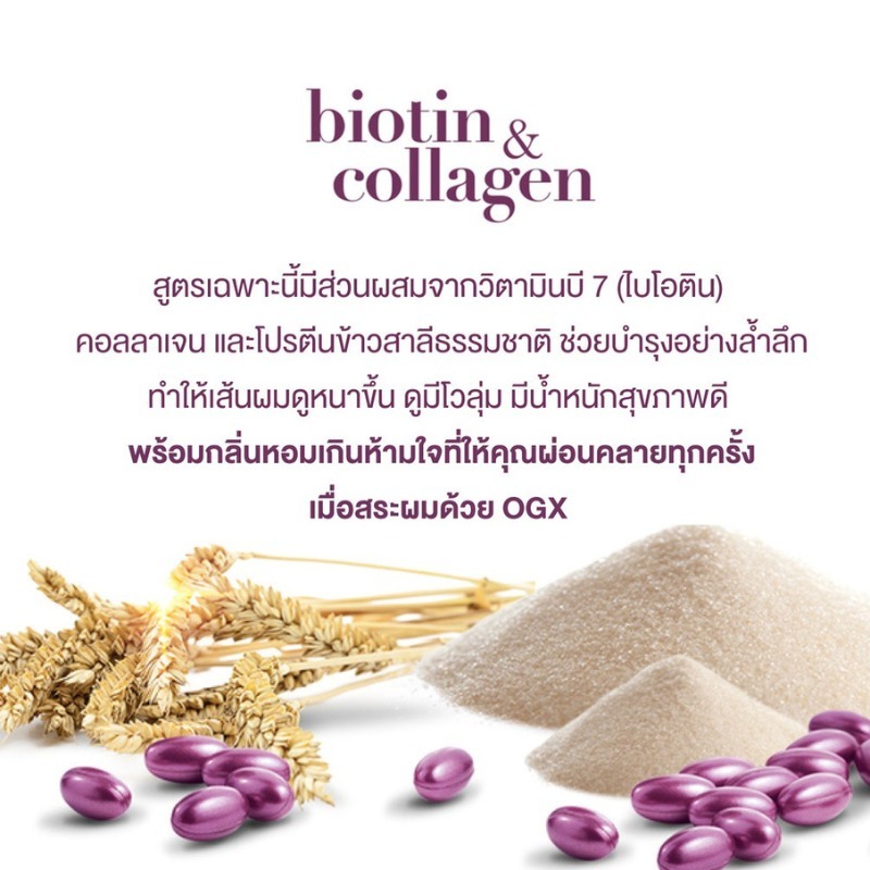 ลดเพิ่ม 30% 🔥 Ogx โอจีเอ็กซ์ ติ๊ก แอนด์ ฟูล + ไบโอติน แอนด์ คอลลาเจน แชมพู shampoo 385mL