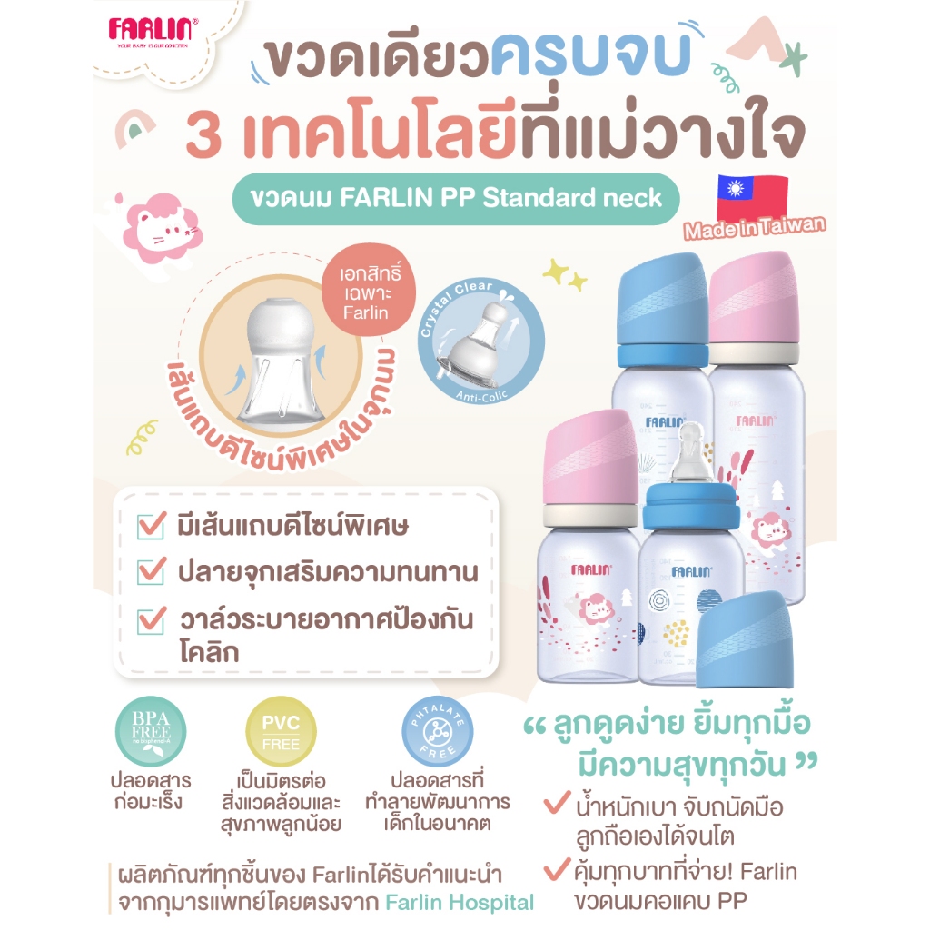 (ดูดง่ายขึ้นด้วย 3 เทคโนโลยี) Farlin ขวดนม PP ดีไซน์จุกเอกสิทธิ์เฉพาะ! เกรดโรงพยาบาลไต้หวัน