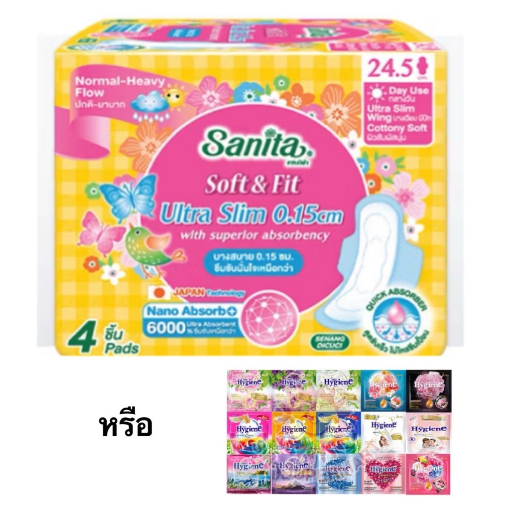 ปรับผ้านุ่มหรือผ้าอนามัยกลางวัน / กลางคืน Sanita ซอฟท์แอนด์ฟิต ผิวสัมผัสนุ่ม แบบมีปีก