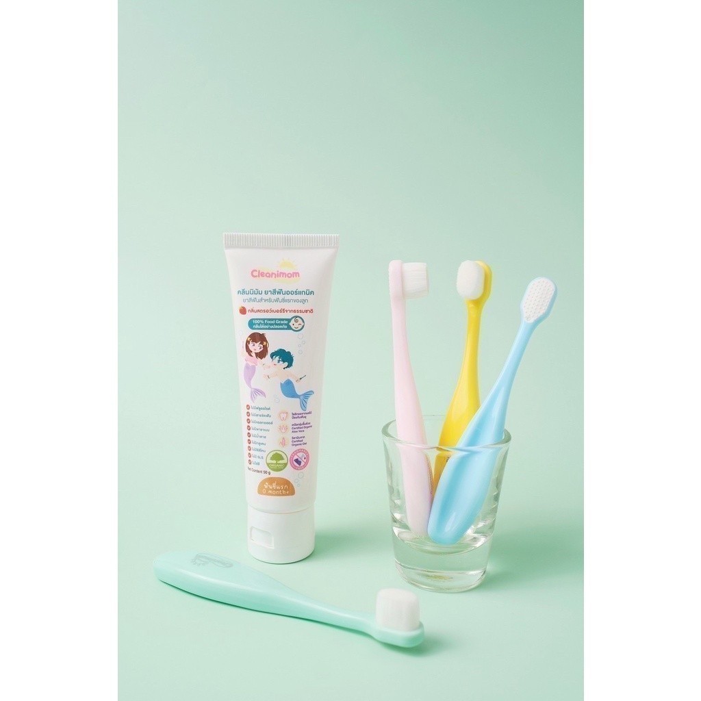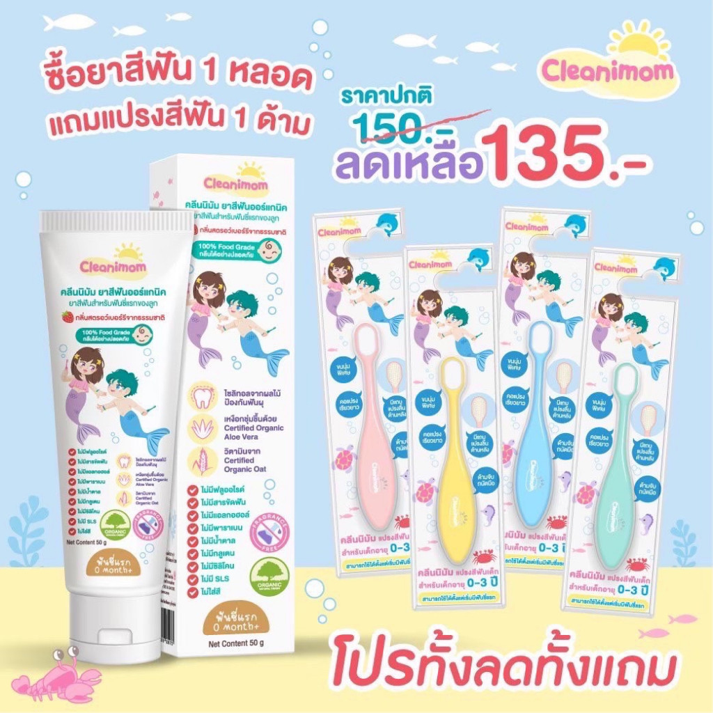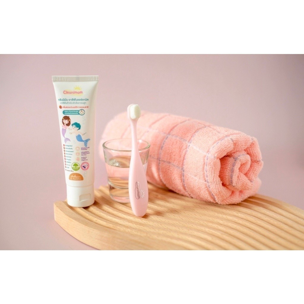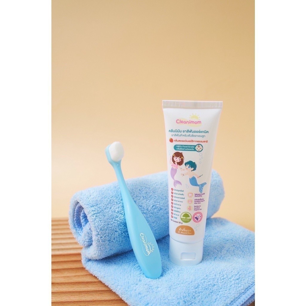 Cleanimom ยาสีฟัน+แปรงสีฟันสำหรับเด็ก ใช้ได้ตั้งแต่ฟันซี่แรก food grade กลืนได้อย่างปลอดภัย กลิ่นสตรอเบอรี่