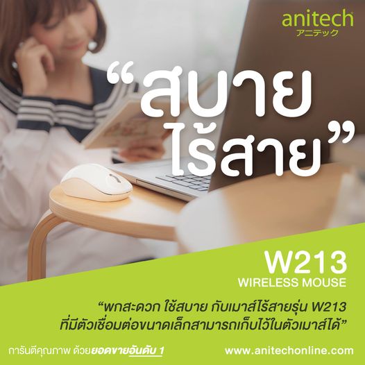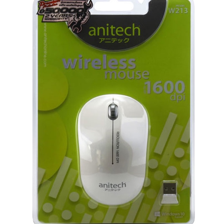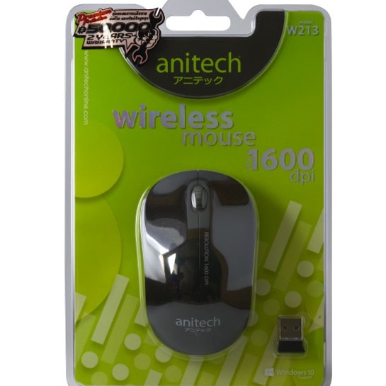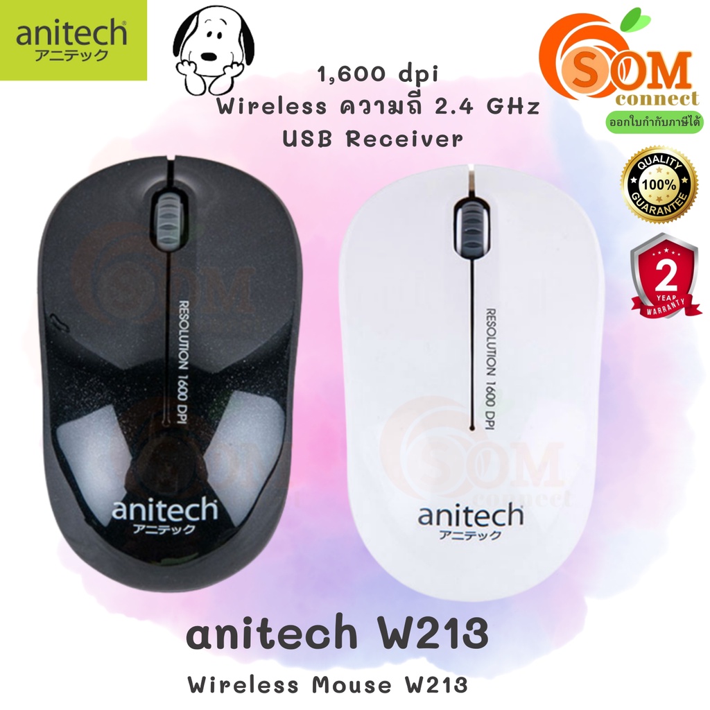 (W213) WIRELESS MOUSE (เมาส์ไร้สาย) Anitech 1600DPI 2.4GHz รับสัญญาณไกล 10ม. (มี 2 สี ขาว|ดำ) 2Y -ของแท้