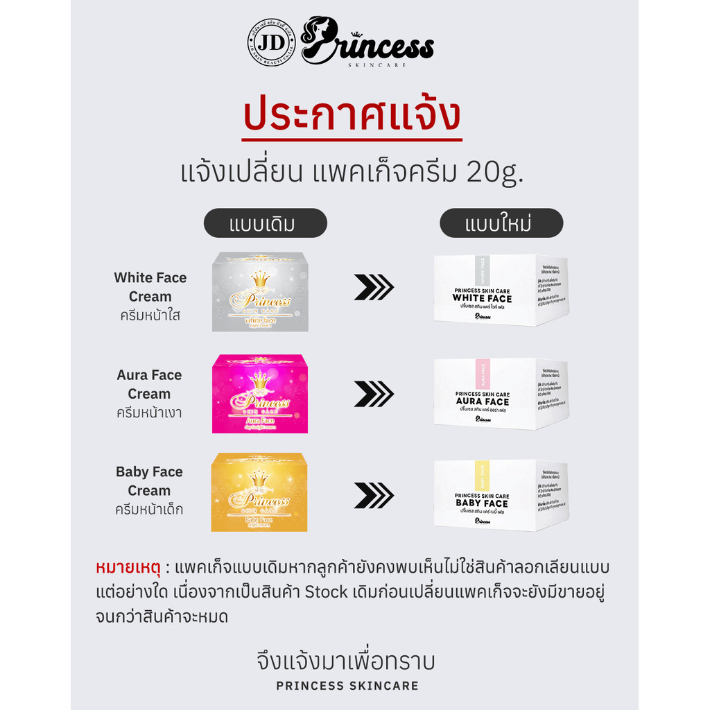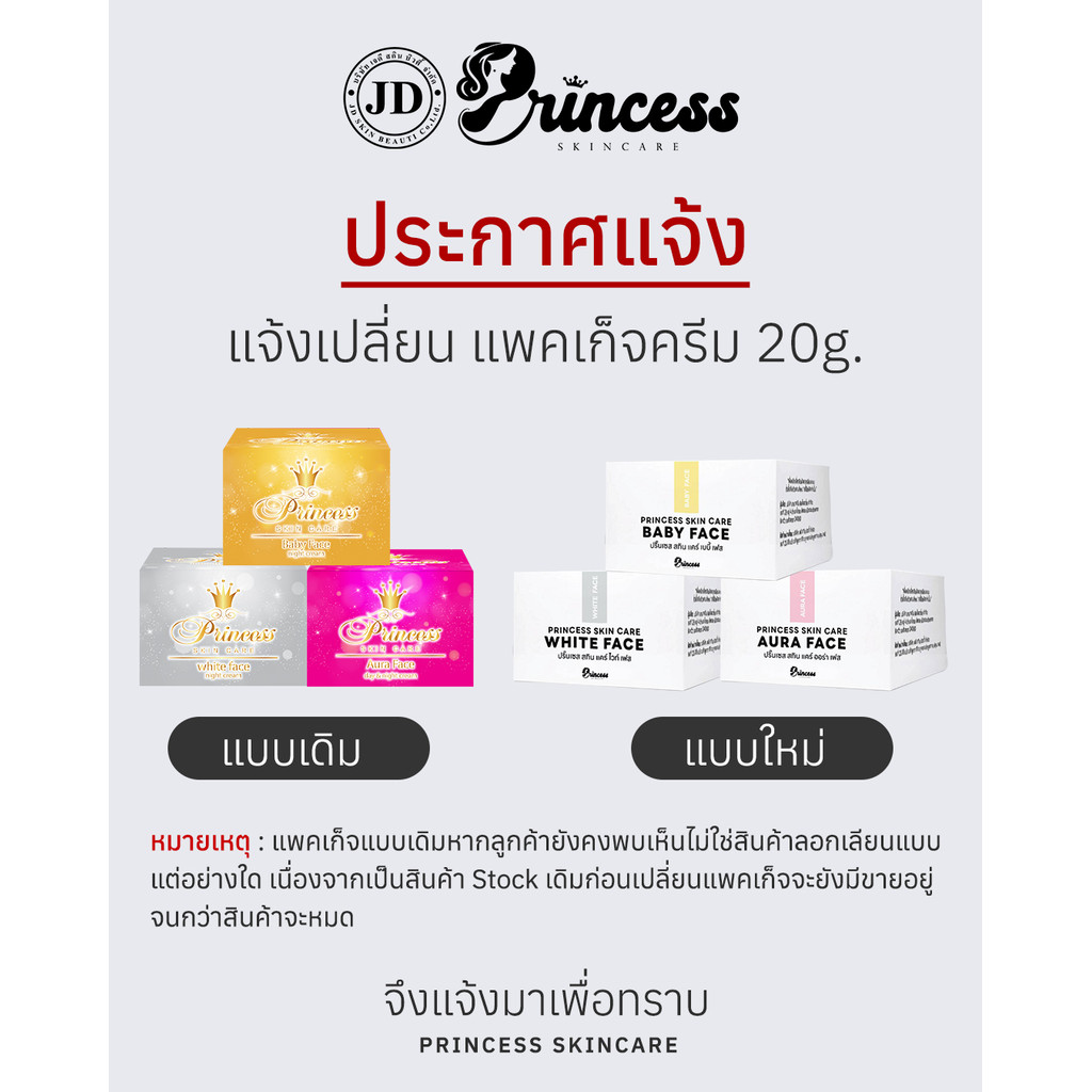 1 กระปุก (แพคเกจใหม่) ครีมหน้าขาว หน้าเงา หน้าเด็ก Princess Skin Care ครีมเดี่ยว ขนาด20 กรัม ✅