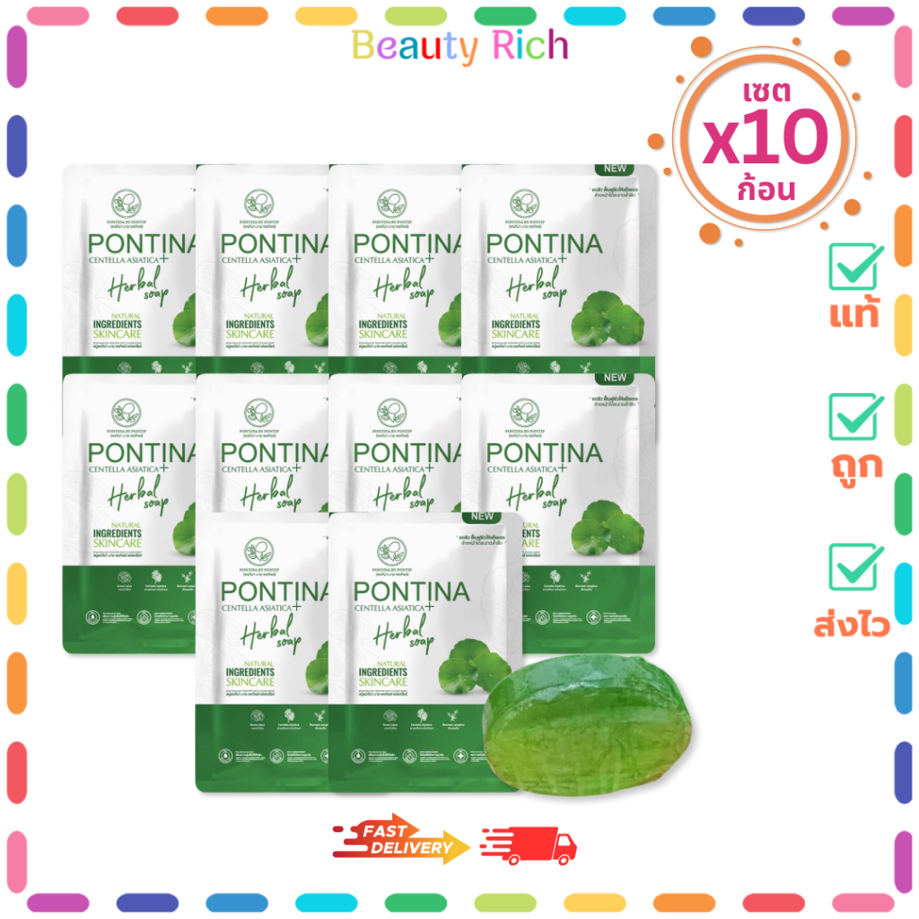 (10 ก้อน) สบู่ใบบัวบกพรทิน่า Pontina ออแกนิค (ปริมาณ 27 กรัม)