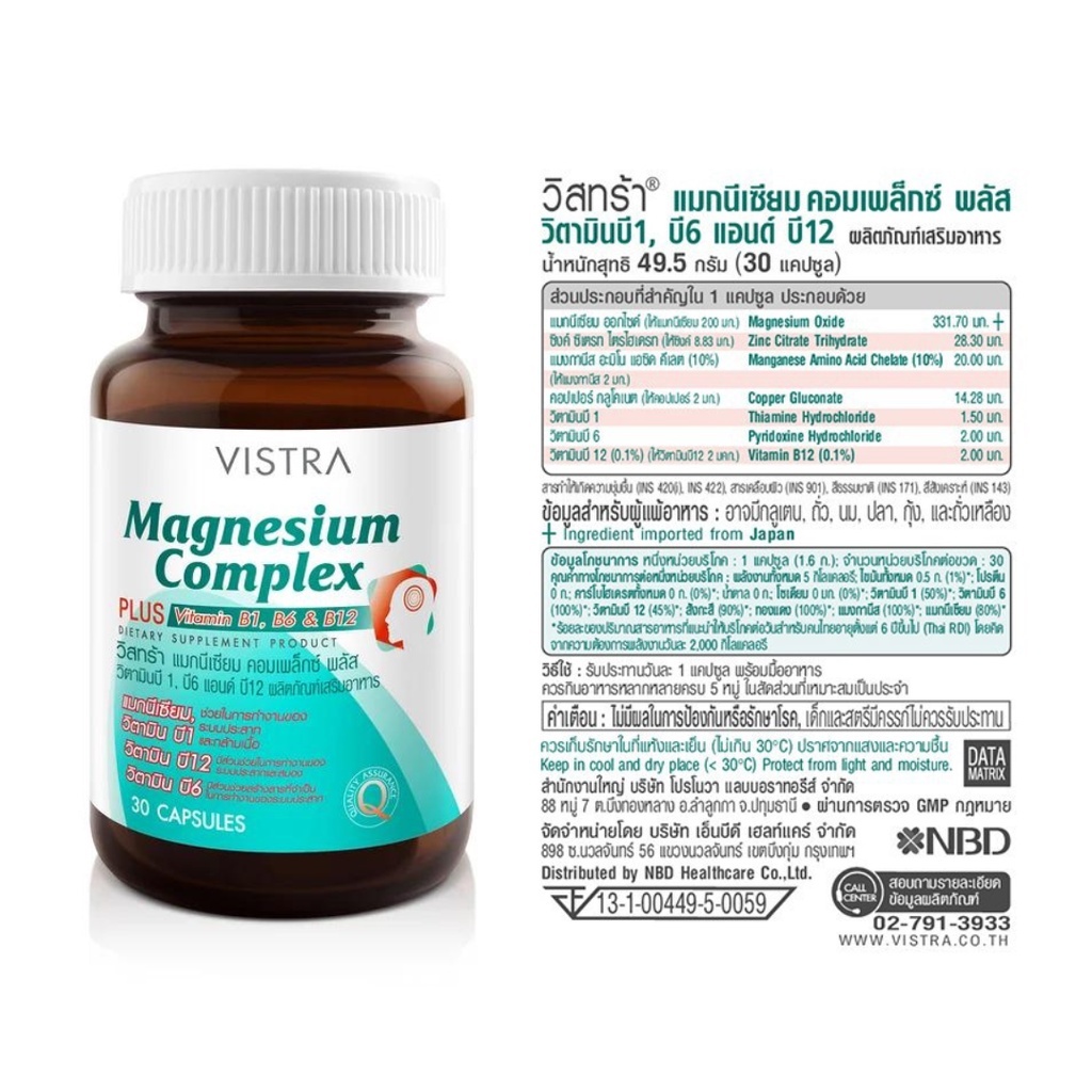 Vistra Magnesium Complex Plus (30 เม็ด)แมกนีเซียม คอมเพล็กซ์ พลัส ผลิตจากวัตถุดิบประเทศญี่ปุ่น #3762