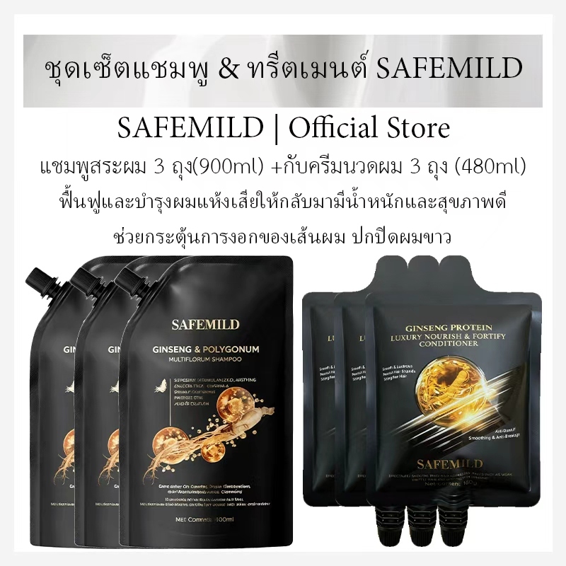 SAFEMILD แชมพูสมุนไพร 300 มล+ ครีมนวดผม160มล ปกปิดความขาวและป้องกันผมร่วง ช่วยให้ผมนุ่มและเรียบเนียน