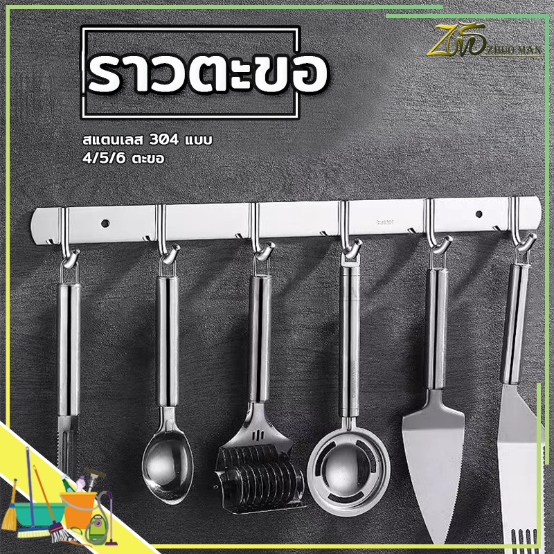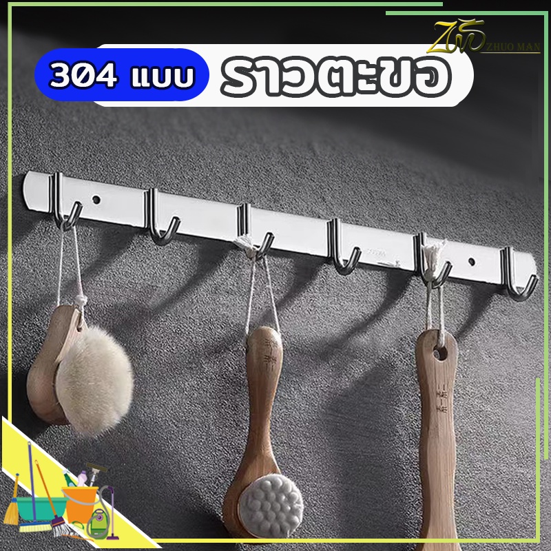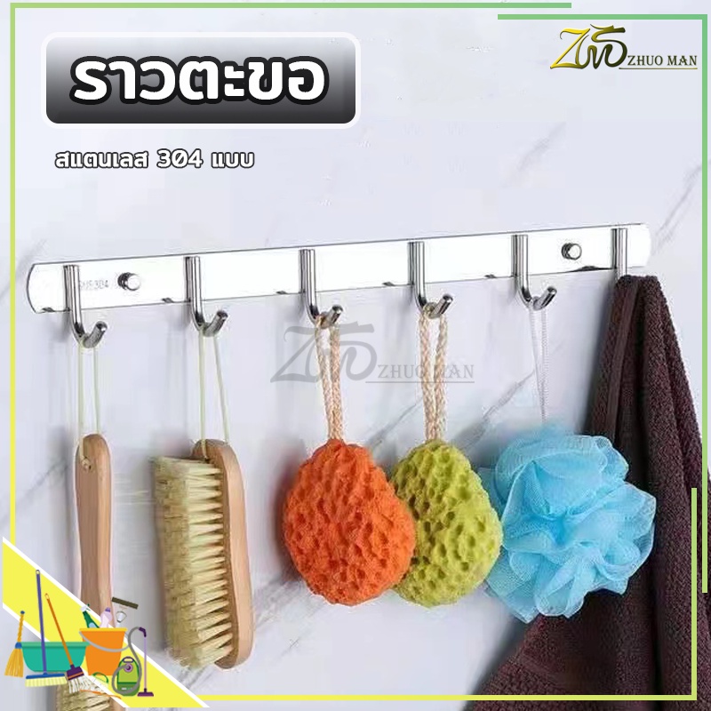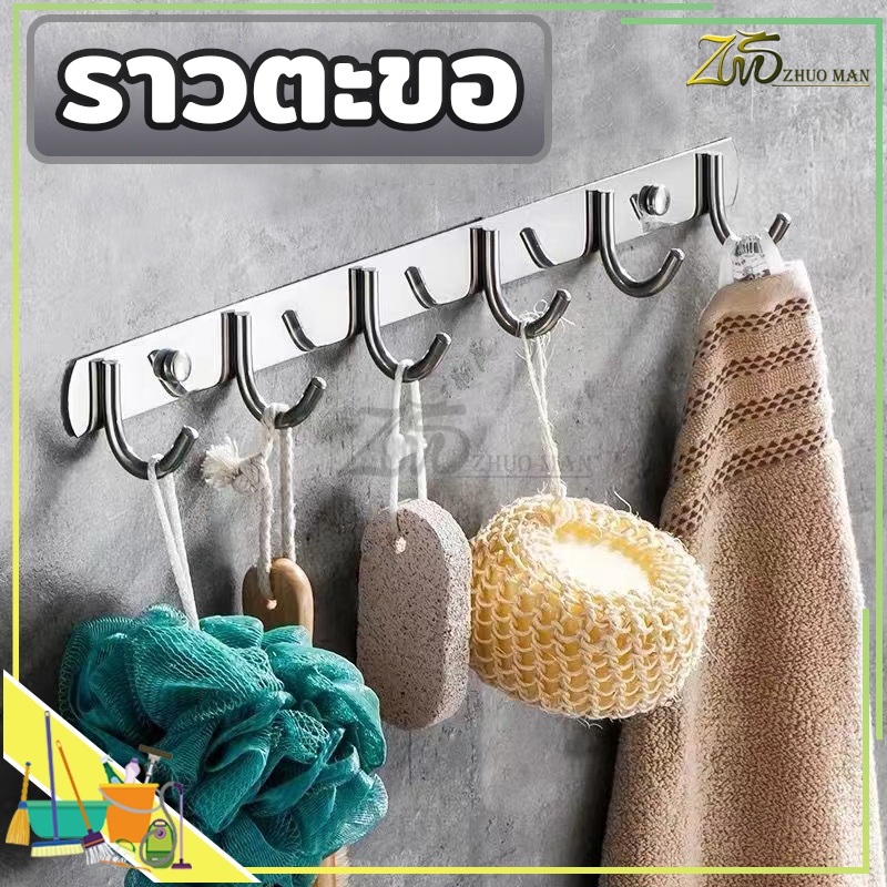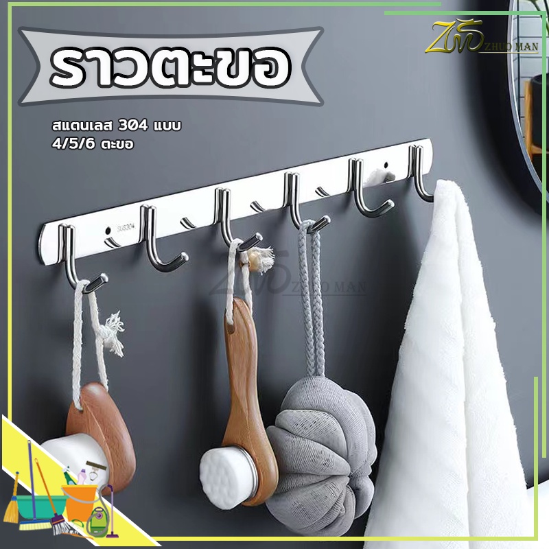 ราวตะขอ ตะขอราง ราวแขวนผ้าติดผนัง ตะขอ ตะขออเนกประสงค์ สแตนเลส 304 แบบ กันน้ำ กันสนิม 4/5/6ตะขอ สไตล์เรียบง่าย