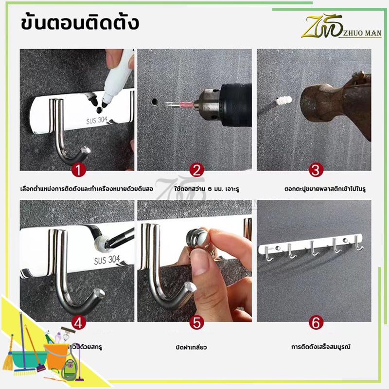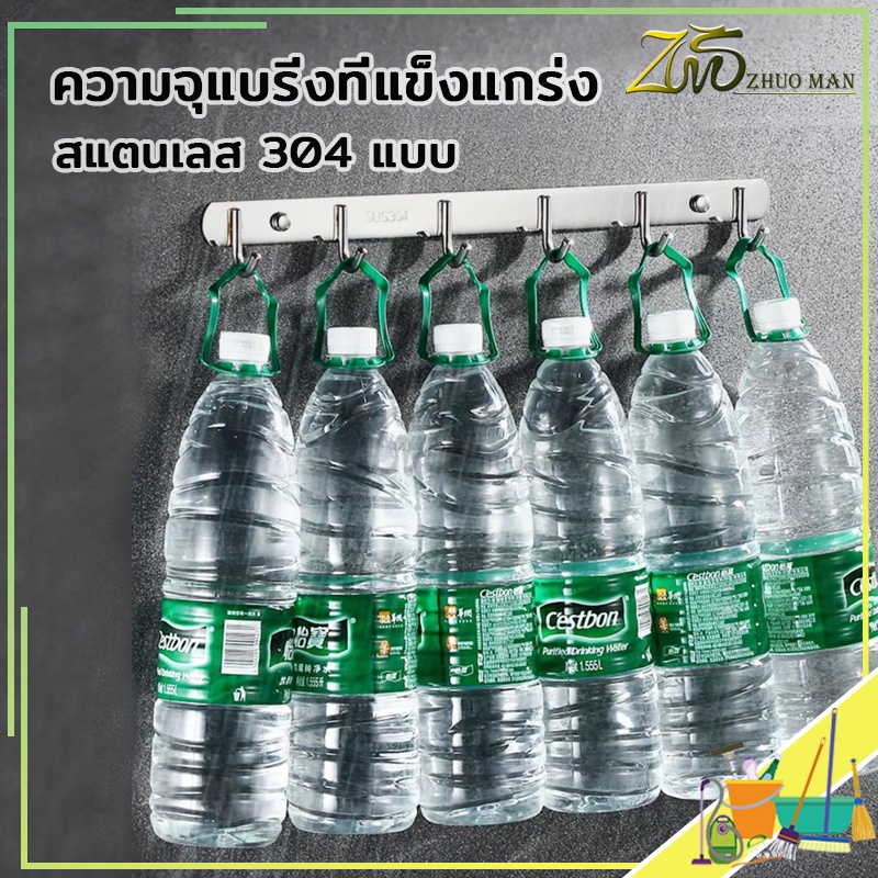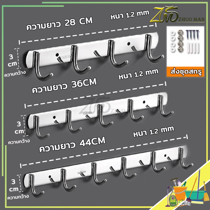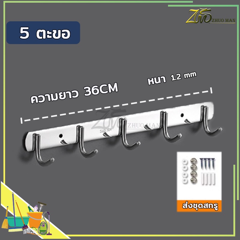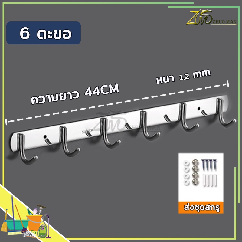 ราวตะขอ ตะขอราง ราวแขวนผ้าติดผนัง ตะขอ ตะขออเนกประสงค์ สแตนเลส 304 แบบ กันน้ำ กันสนิม 4/5/6ตะขอ สไตล์เรียบง่าย