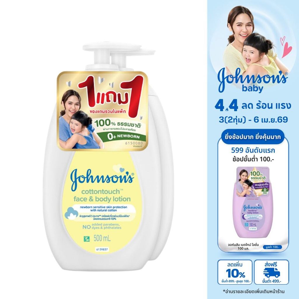 [1แถม1] จอห์นสัน ครีมบำรุงผิวโลชั่นเด็ก หน้าและตัว เฟซ แอนด์ บอดี้ โลชั่น คอตตอน ทัช 500 มล 1+1