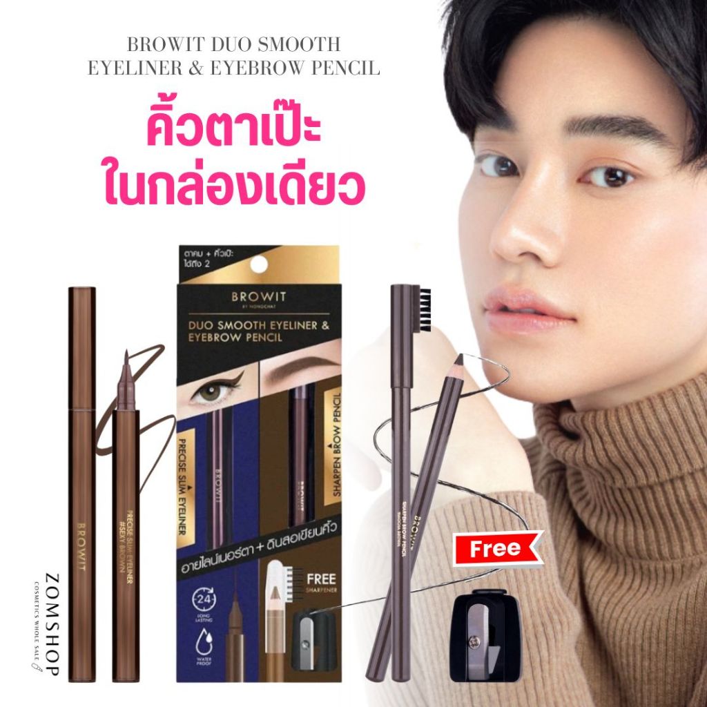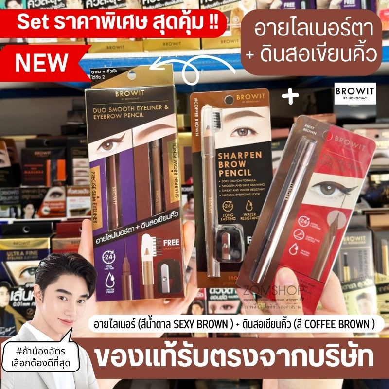 Set สีม่วง【น้องฉัตร】อายไลเนอร์+ดินสอเขียนคิ้ว【สี COFFEE】BROWIT DUO SMOOTH EYELINER & EYEBROW PENCIL