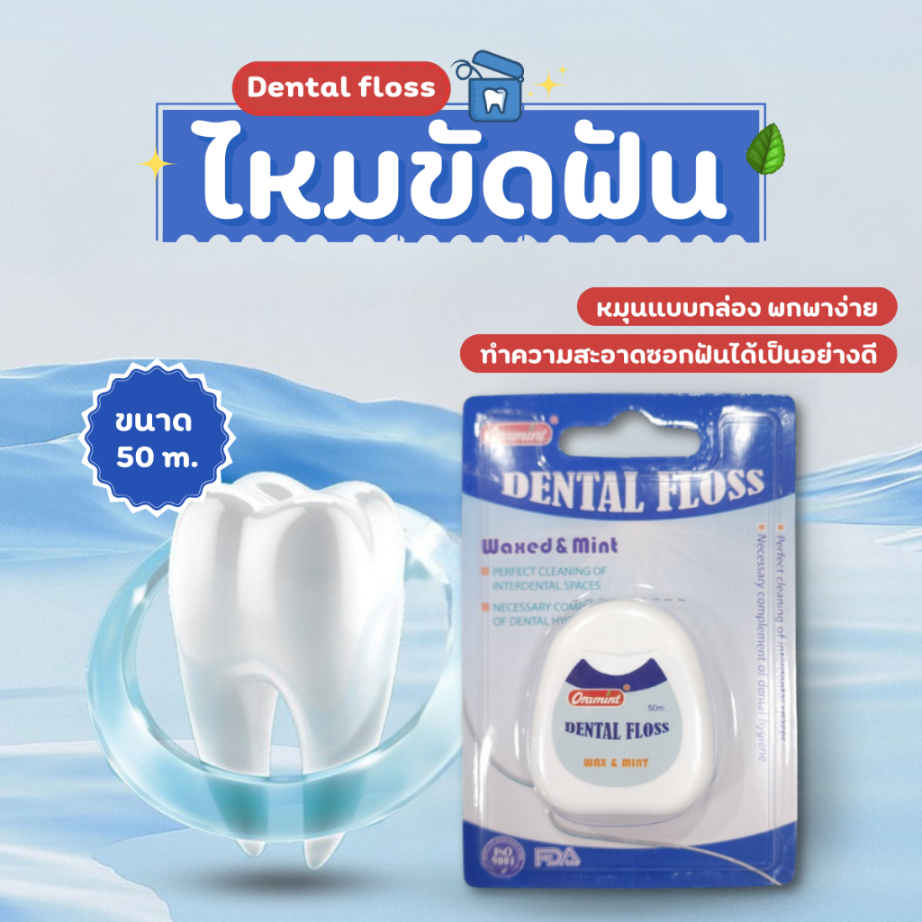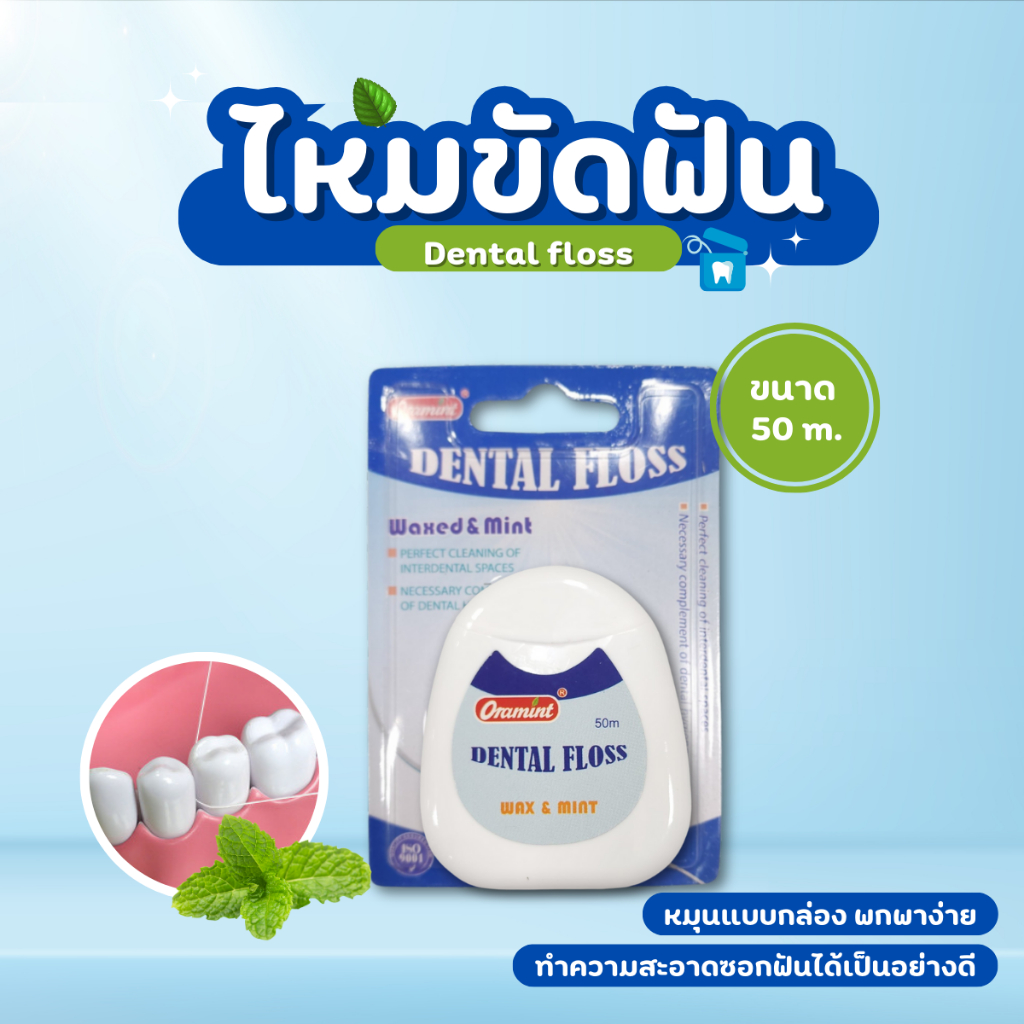 THEWIN ไหมขัดฟัน Dental Floss ทำความสะอาดล้ำลึก ไม่ทำให้ฟันห่าง กลิ่นมินท์หอมสดชื่น แบบกล่อง 50 เมตร