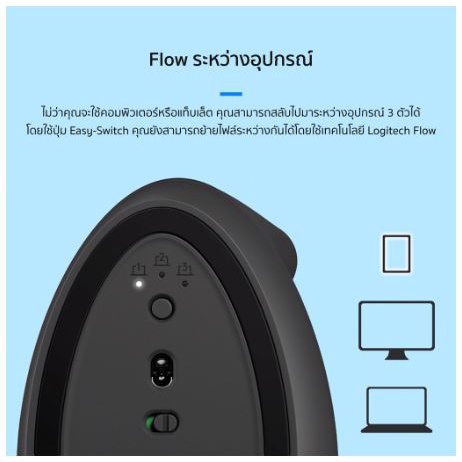 Logitech Lift Vertical Ergonomic Wireless Mouse Bluetooth (เมาส์ไร้สายเสียงเงียบเชื่อมต่อบลูทูธ ลดอาการปวดข้อมือ