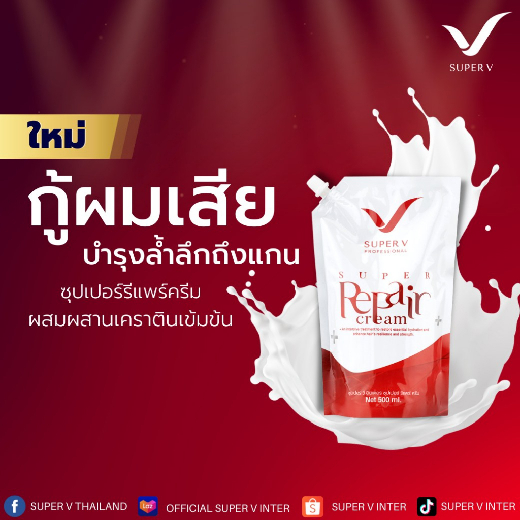 ซุปเปอร์วี อินเตอร์ ซุปเปอร์ รีแพร์ ครีม ทรีทเม้นท์ผสมเคราตินเข้มข้น SUPER V INTER SUPER REPAIR CREAM 500ml.