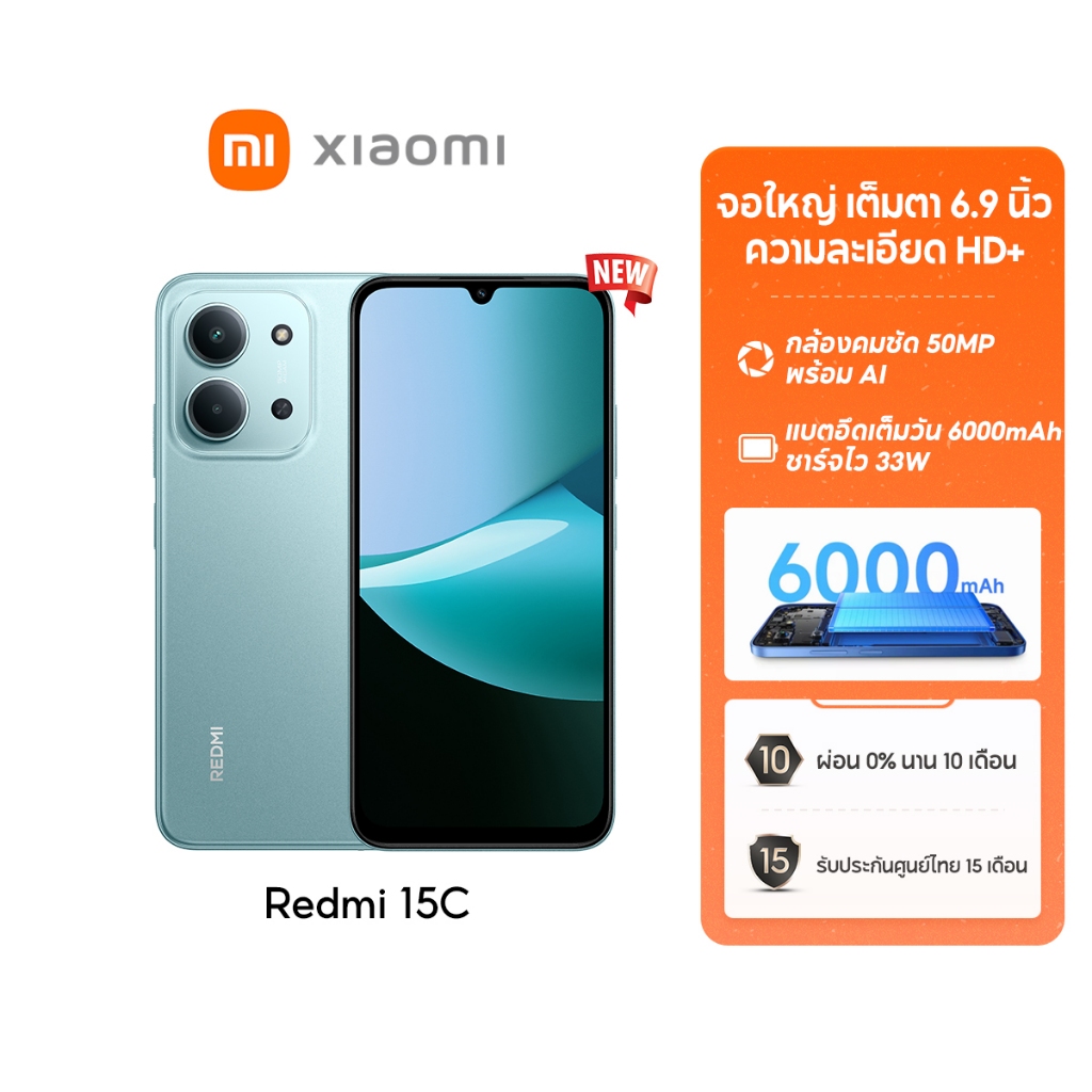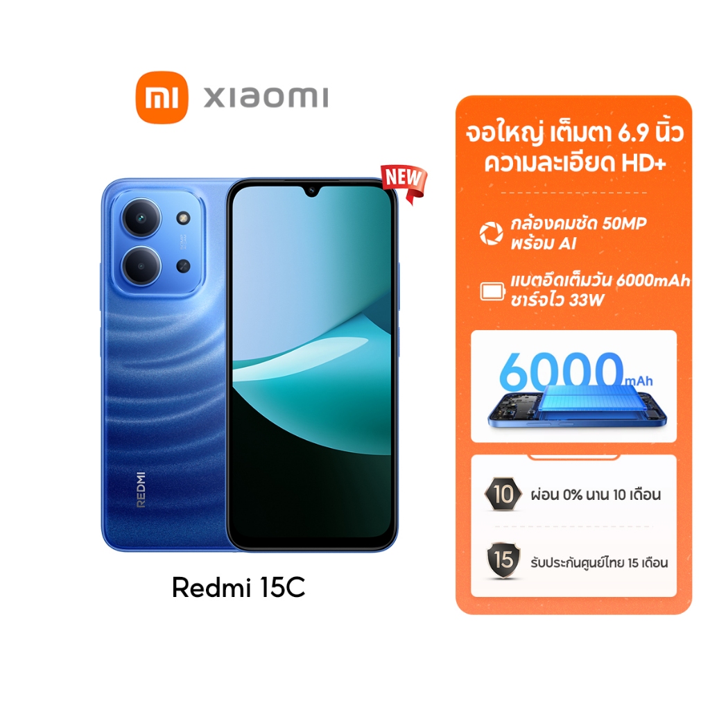 [NEW] Xiaomi Redmi 15C 6+128 / 8+256 จอใหญ่ เต็มตา 6.9 นิ้ว ความละเอียด HD+ กล้องคมชัด 50MPพร้อม AI แบตอึดเต็มวัน 6000mA