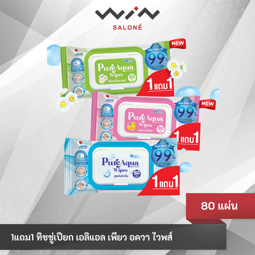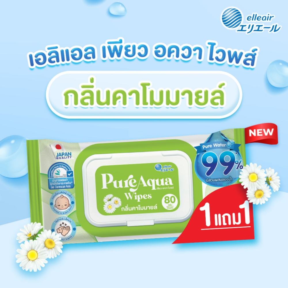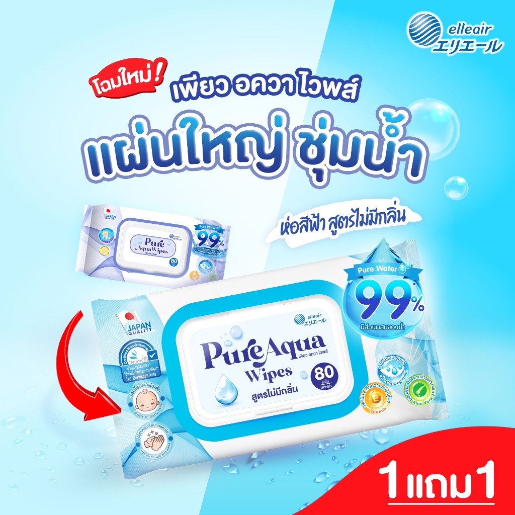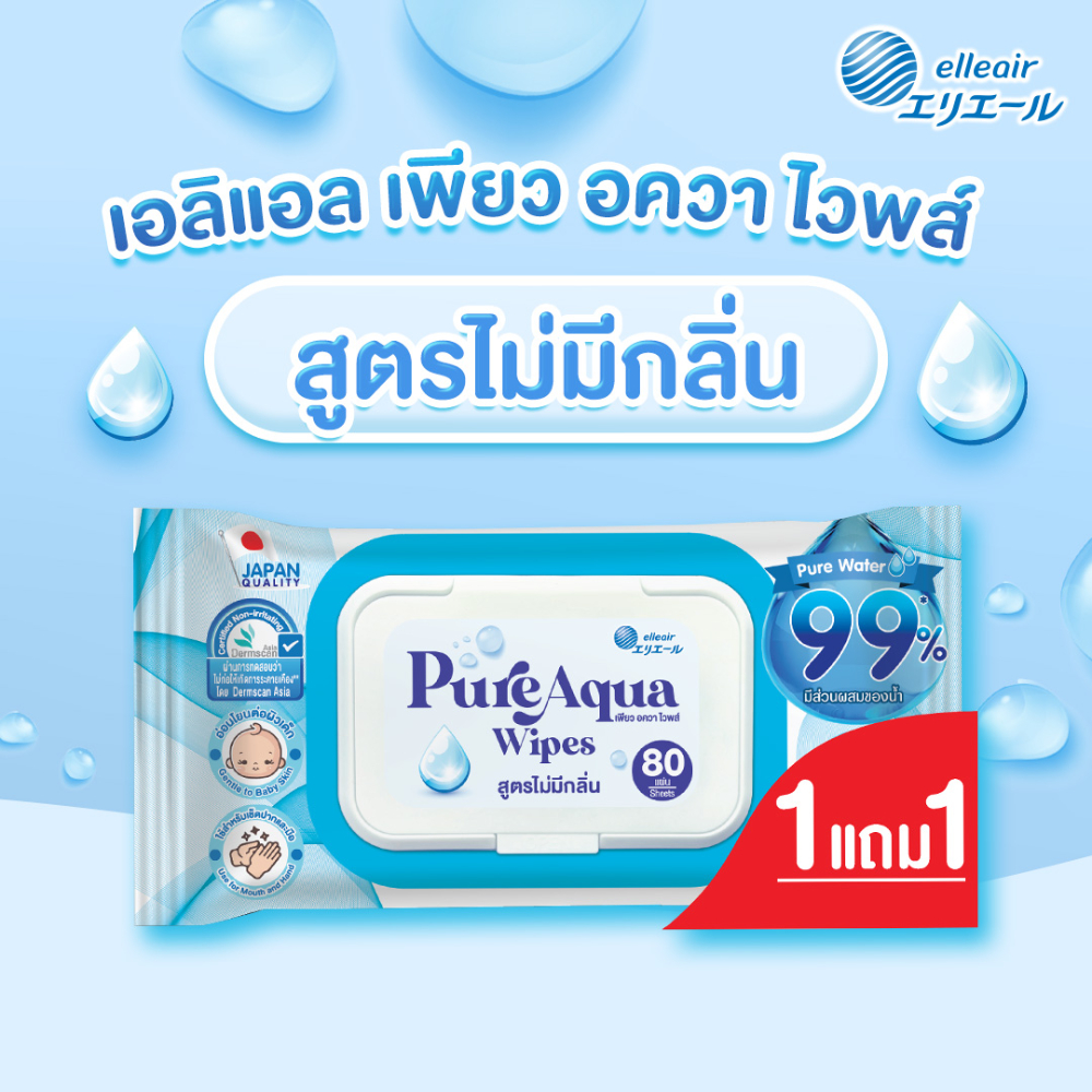 1แถม1 ทิชชู่เปียก เอลิแอล เพียว อควา ไวพส์ 80 แผ่น Elleair Wet Wipe Pure Aqua Wipes