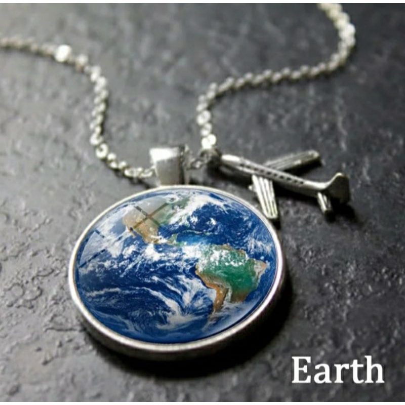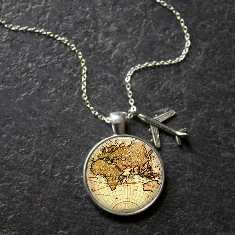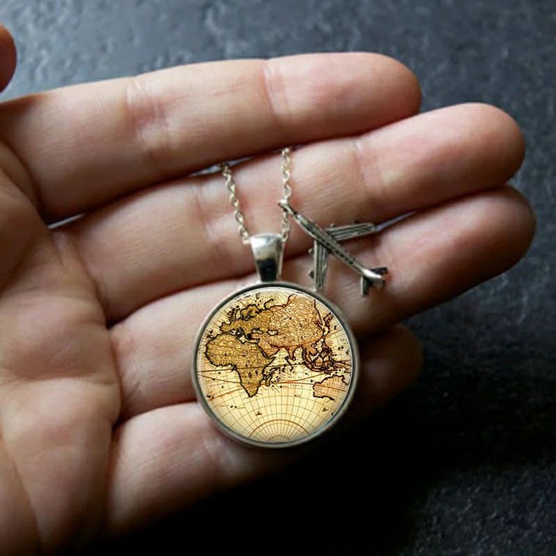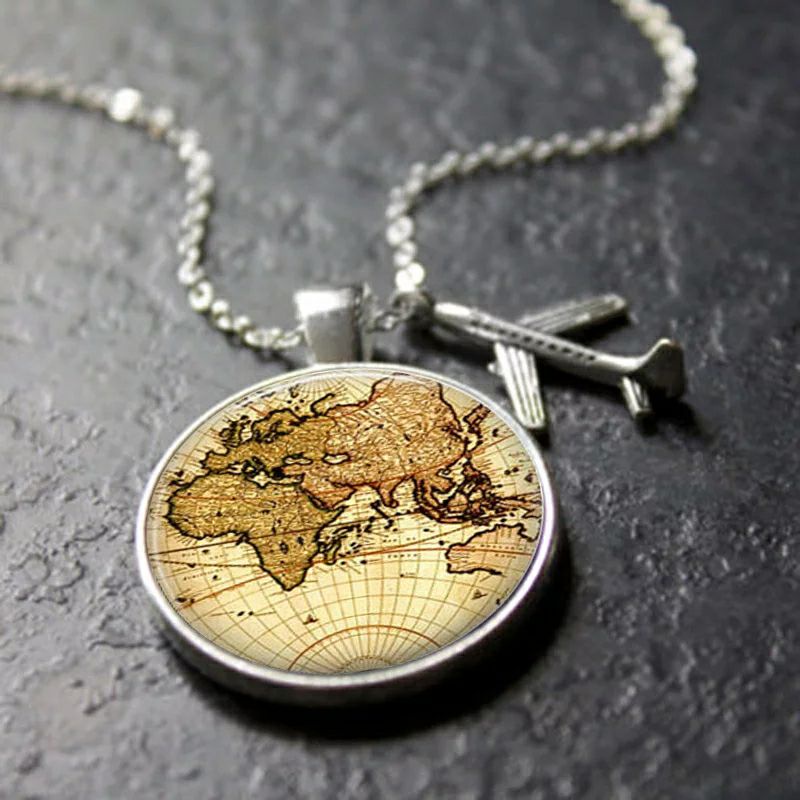 สร้อยVintage World🌎แผนที่โลก เดินทางสำรวจและมีจี้เครื่องบิน✈ฟรีสร้อยคอ