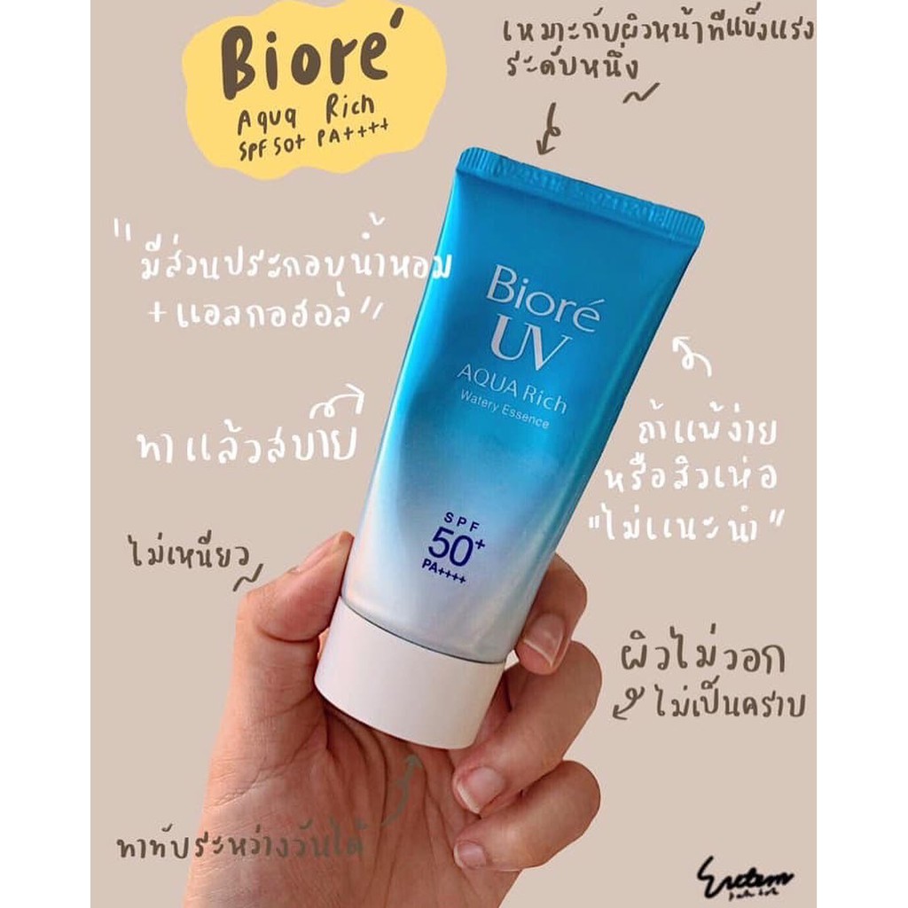 50g. Biore UV Aqua Rich Watery Essence บิโอเร ยูวี อะควา ริช เอสเซ้นส์ ครีมกันแดด แบบหลอด