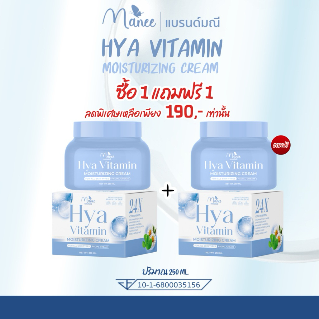 มณี ไฮยา วิตามิน มอยเจอไรซิ่ง ครีม ซื้อ1แถม1 ขนาด250มล. บำรุงผิวให้ชุ่มชื้น