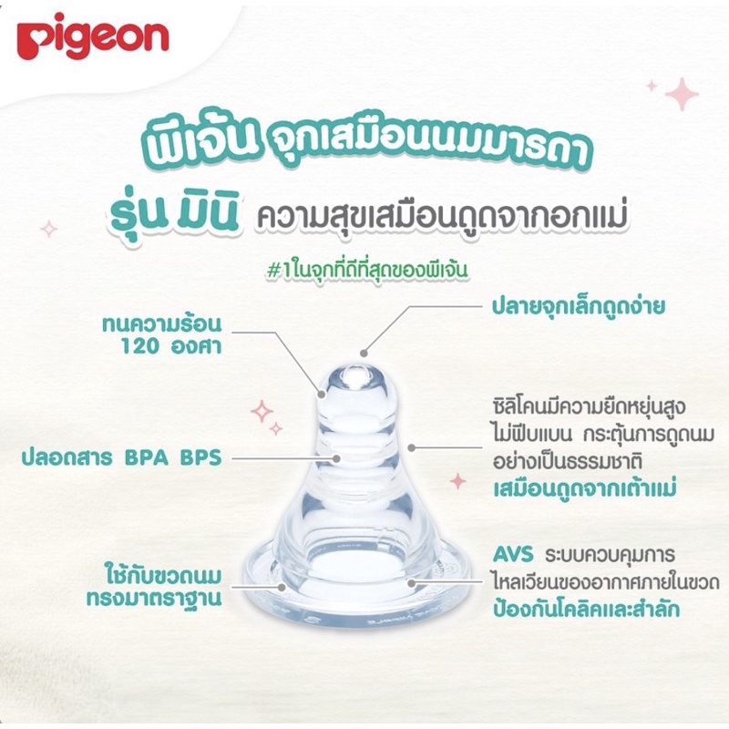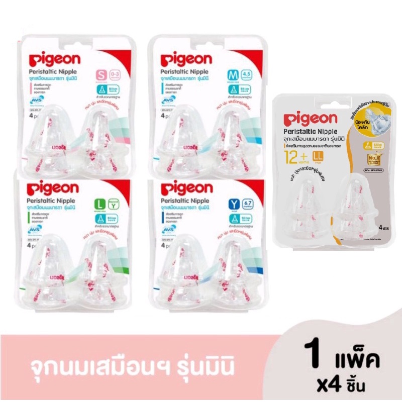 Pigeon พีเจ้น จุกนมเสมือน นมมารดารุ่นมินิ (คละไซส์ S,M,L แพ็ค 4 จุก) (1แพ็ค)