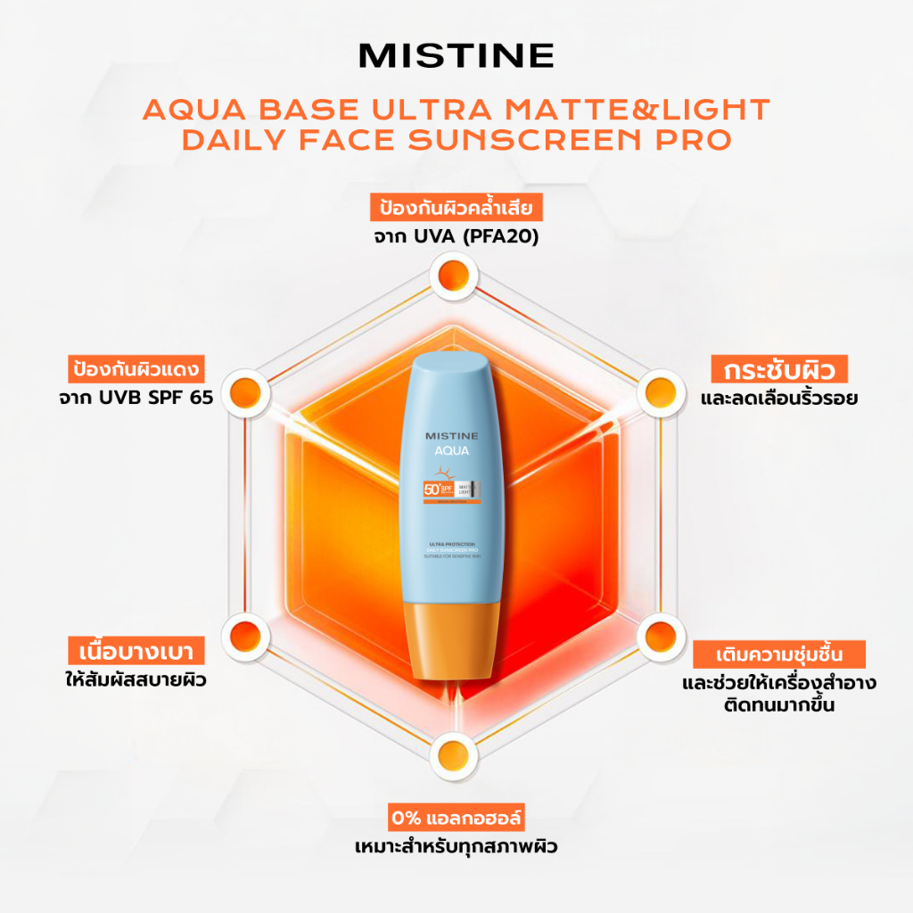 ครีมกันแดด MISTINE AQUA BASE ULTRA MATTE&LIGHT DAILY FACE SUNSCREEN PRO SPF50+ PA++++ 90ML