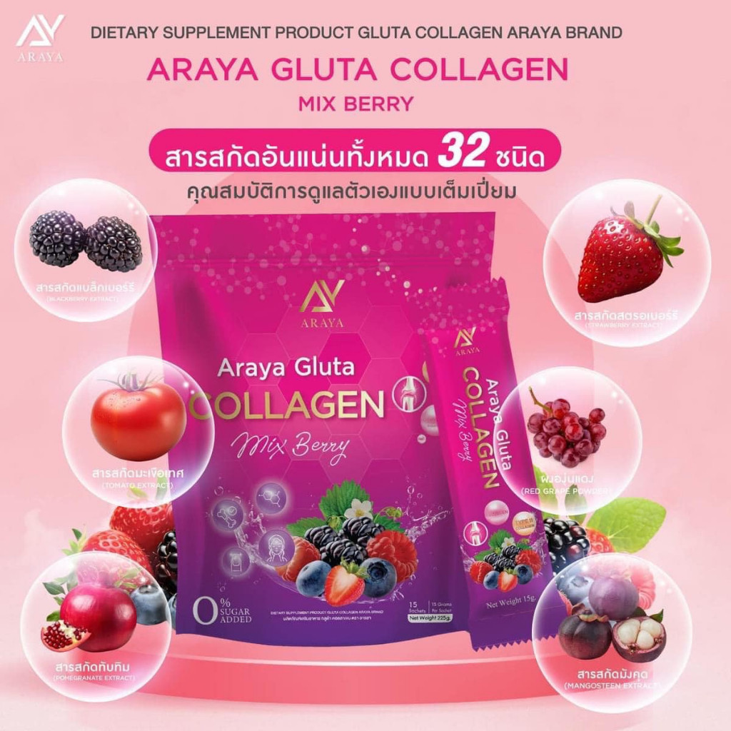 แท้ ✅Araya Collagen อารยา คอลลาเจน วิตามินผิว ผลิตภัณฑ์เสริมอาหาร 1 ห่อ 30 ซอง