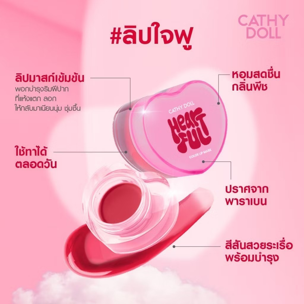 Cathy Doll Heartful Color Lip Mask ลิปใจฟู เคที่ดอลล์ ฮาร์ทฟูลคัลเลอร์ลิปมาสก์ ชุ่มชื้น บำรุงปาก 7 g. ♥️♥️