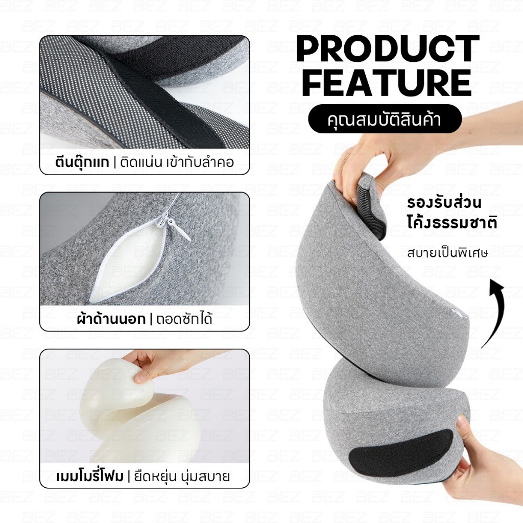 หมอนรองคอทรงยู พกพาสะดวก พับเก็บง่าย รองรับต้นคอ กันคอเอียง หลับสบายระหว่างเดินทางไกลทุกทริป