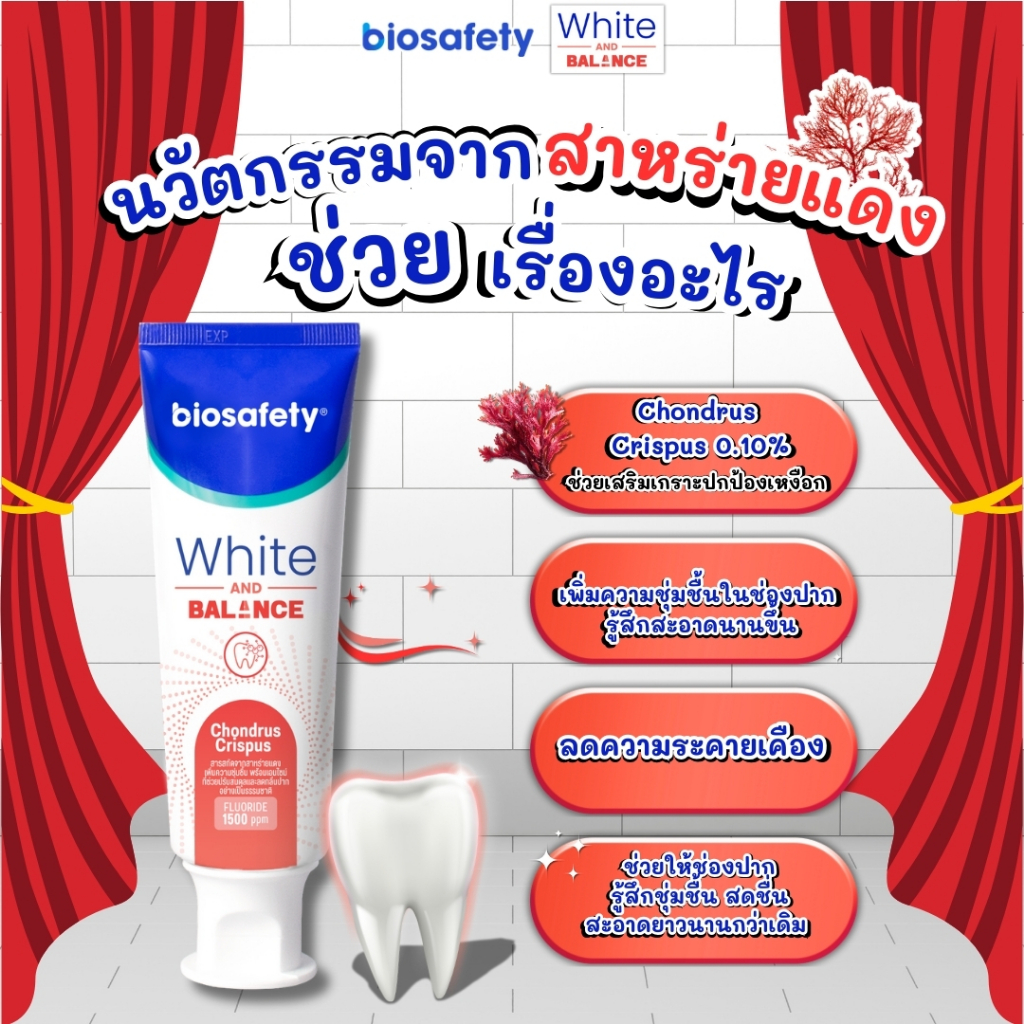 Biosafety ยาสีฟัน ไบโอเซฟตี้ สูตรฟันขาว ลดสีเหลือง ของฟัน มีให้เลือก 2 สูตร 100 กรัม