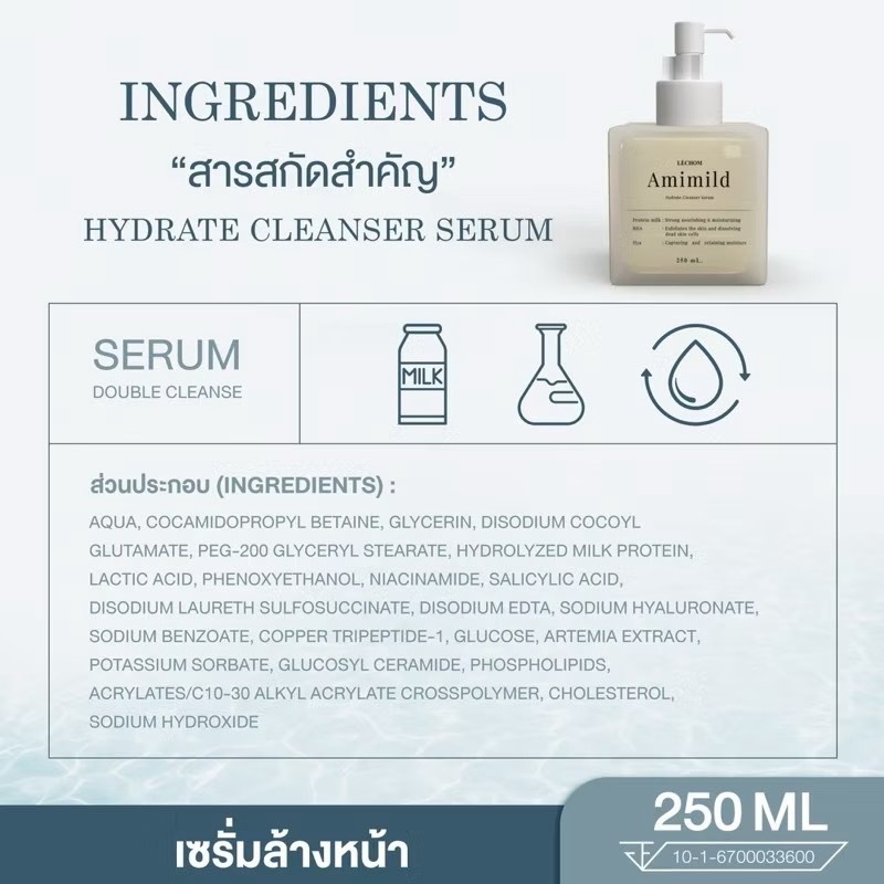 [ลด40%ในไลฟ์/VDO] เซรั่มล้างหน้าเลอโฉม Lechom Amimild Hydrate Cleanser serum เจลล้างหน้า