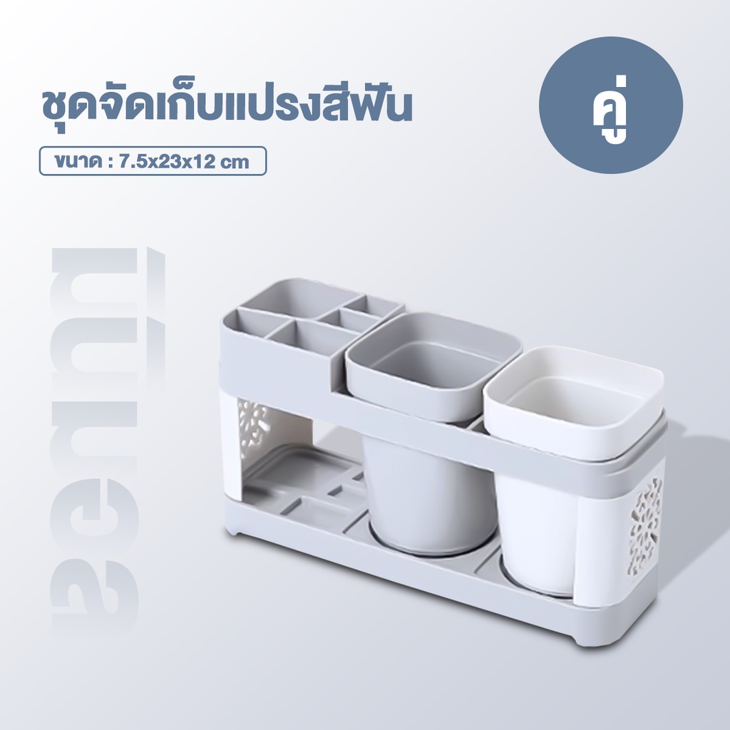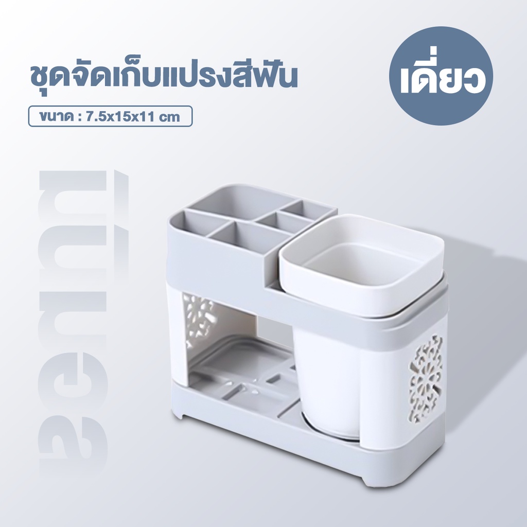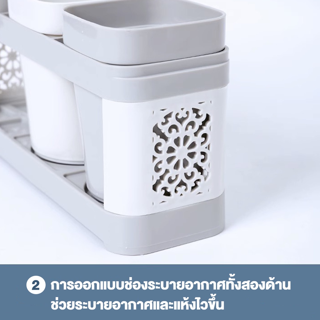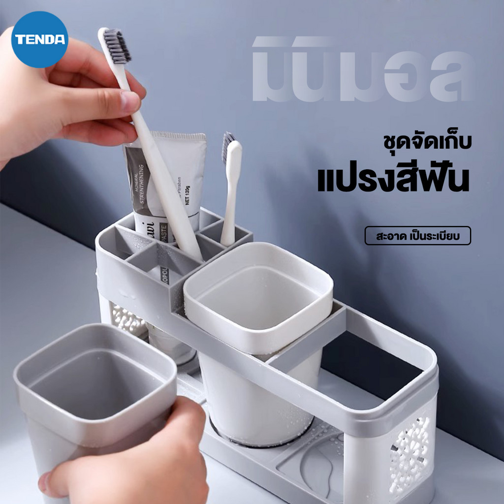 TENDA ชุดอุปกรณ์แปรงฟัน ที่ใส่แปรงสีฟัน ถาดวาง+แก้วบ้วนปาก มีช่องใส ่แปรงสีฟันได้หลายช่อง อุปกรณ์จัดเก็บในห้องน้ำ