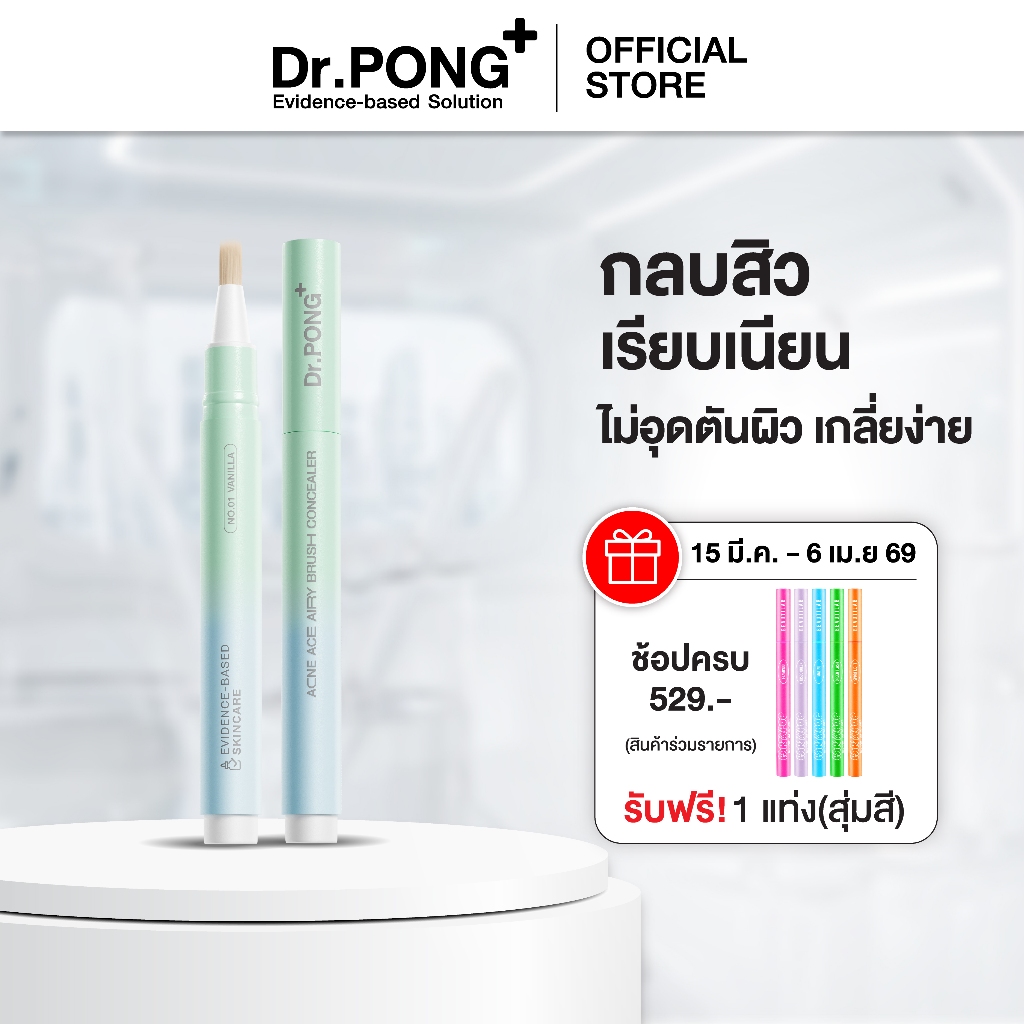 Dr.PONG ACNE ACE AIRY BRUSH CONCEALER คอนซีลเลอร์แต้มสิว กลบรอยสิวเนียนกริบ กันน้ำกันเหงื่อ ไม่เป็นคราบ