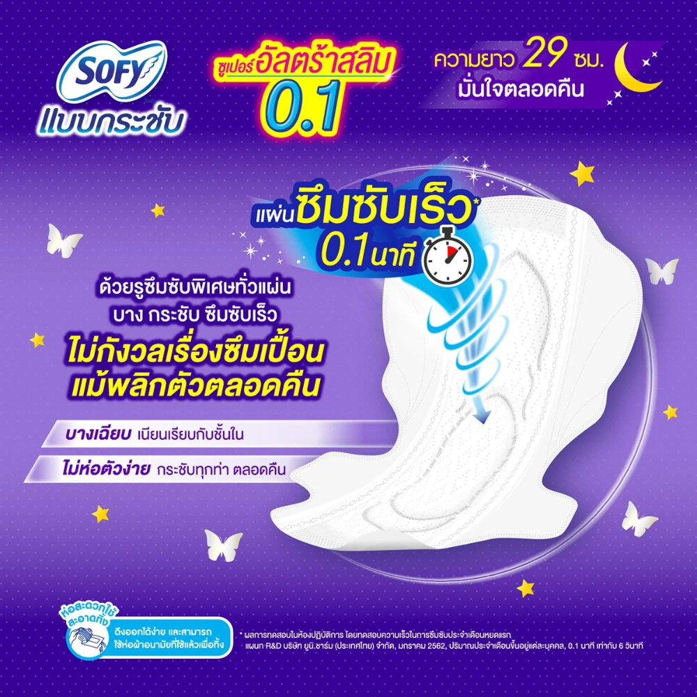 Sofy โซฟี ผ้าอนามัย แบบกระชับ ซูเปอร์อัลตร้าสลิม 0.1 สำหรับกลางคืน แบบมีปีก 29 ซม. 3/8/16 ชิ้น