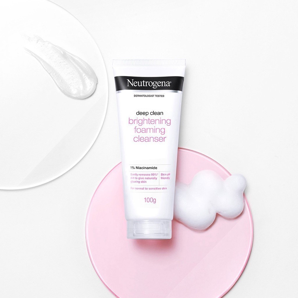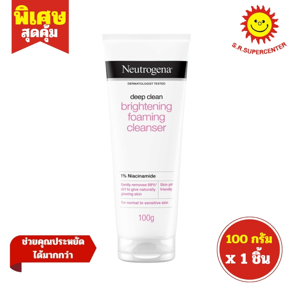 [ 1ชิ้น ] Neutrogena Deep Clean นูโทรจีนา ดีพ คลีน ไบร์ทเทนนิ่ง โฟมมิ่ง คลีนเซอร์ ขนาด 100 กรัม (1ชิ้น)